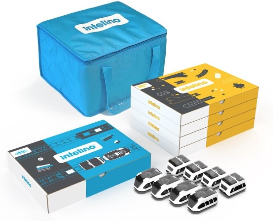 Pre väčšie skupinové projekty je možné spojiť viac sád koľají a vláčikov, ktoré sú súčasťou jednotlivých sád. K sadám je možné doplniť ďalšie príslušenstvo pre koľaje od značky Intelino, ako sú napríklad rampy a podporné veže, ktoré je možné dokúpiť samostatne. U týchto osvedčených spôsobov spolupráce môžu študenti stavať inteligentné koľaje aj mestá, a interaktívne programovať viac vlakov pomocou niektorého zo 4 režimov programovania Intelino komponentov.Školská sada Intelino je sada lokomotív s vagónikmi, ako ju poznáte z klasickej štartovacej sady, ale v elegantnej taške v ktorej na vás čakajú hneď 4 lokomotívy, 4 vagóniky a 4 sady koľají. Deti sa s vláčikmi hrajú po generácie a táto sada ich naučí základy STEM aktivít jednoduchou a hravou formou.