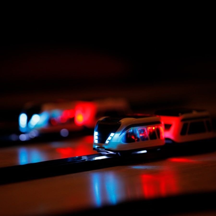 Múdra vláčiková školská sada je navrhnutá tak, aby zefektívnila používanie inteligentných robotických vlakov Intelino v triede.