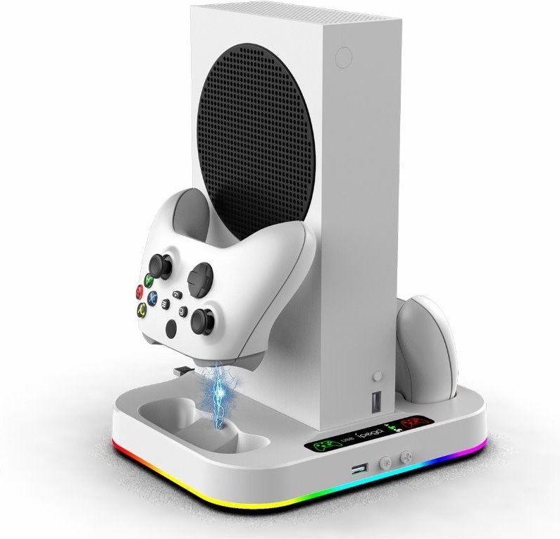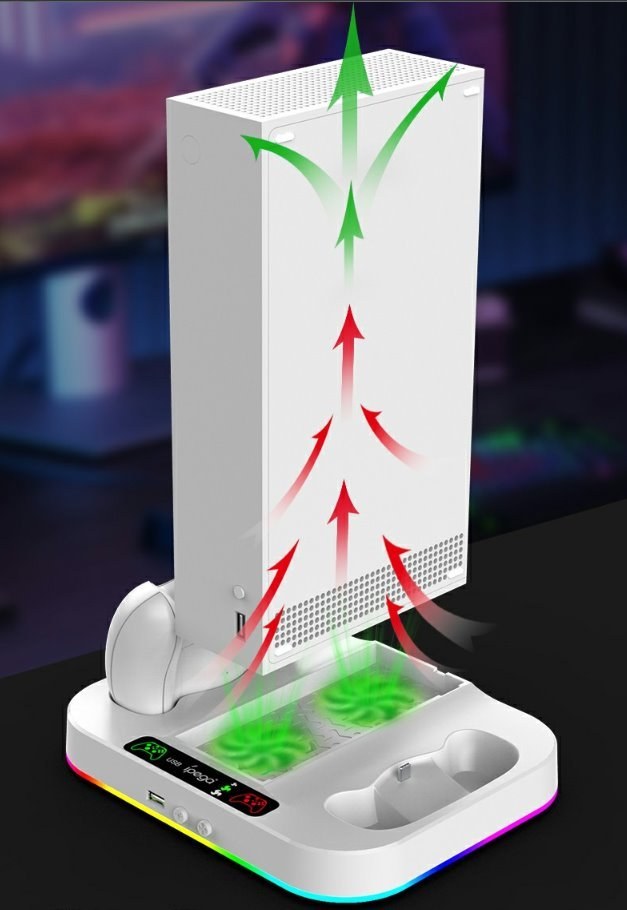 iPega XBS012S stojan s chladením pre Xbox serie S s nabíjaním pre dva ovládače a RGB podsvietenou základňou a 2ks batérií s kapacitou 1400mAhVšetko čo potrebujete na hranie Vám ponúkne tento stojan.