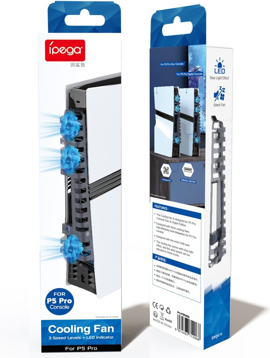 iPega prídavný ventilátor pre PlaySatation 5 Pro/Slim pre maximálne efektívne chladenie hernej konzoly počas hrania a s USB-A výstupom. Jednoduchá inštalácia behom okamihu, zapojenie do USB portu hernej konzoly a regulácia otáčok v troch stupňoch. Máte doma PS5 Pro/Slim hernú konzolu, trávite na nej dlhé hodiny hraním a chcete ju udržať čo najdlhšie v TOP kondícii?Potom siahnite po tomto ventilátore, pretože ako každý hráč vie, horúco je tichý zabijak a zlikviduje časom všetko na čom vám záleží. Ventilátor sa napája z USB na zadnej časti hernej konzoly, ale nebojte sa, o voľné USB neprídete. Voľný USB port je vyvedený na vonkajšiu stranu tela chladiča a je vám plne k dispozícii. Na bočnej strane nájdete dotykové tlačidlo na prepínanie rýchlosti ventilátora. Nastaviť si tak môžete jednu z troch predvolených rýchlostí. Pri spustení ventilátora sa vám zároveň spustí aj modré podsvietenie.