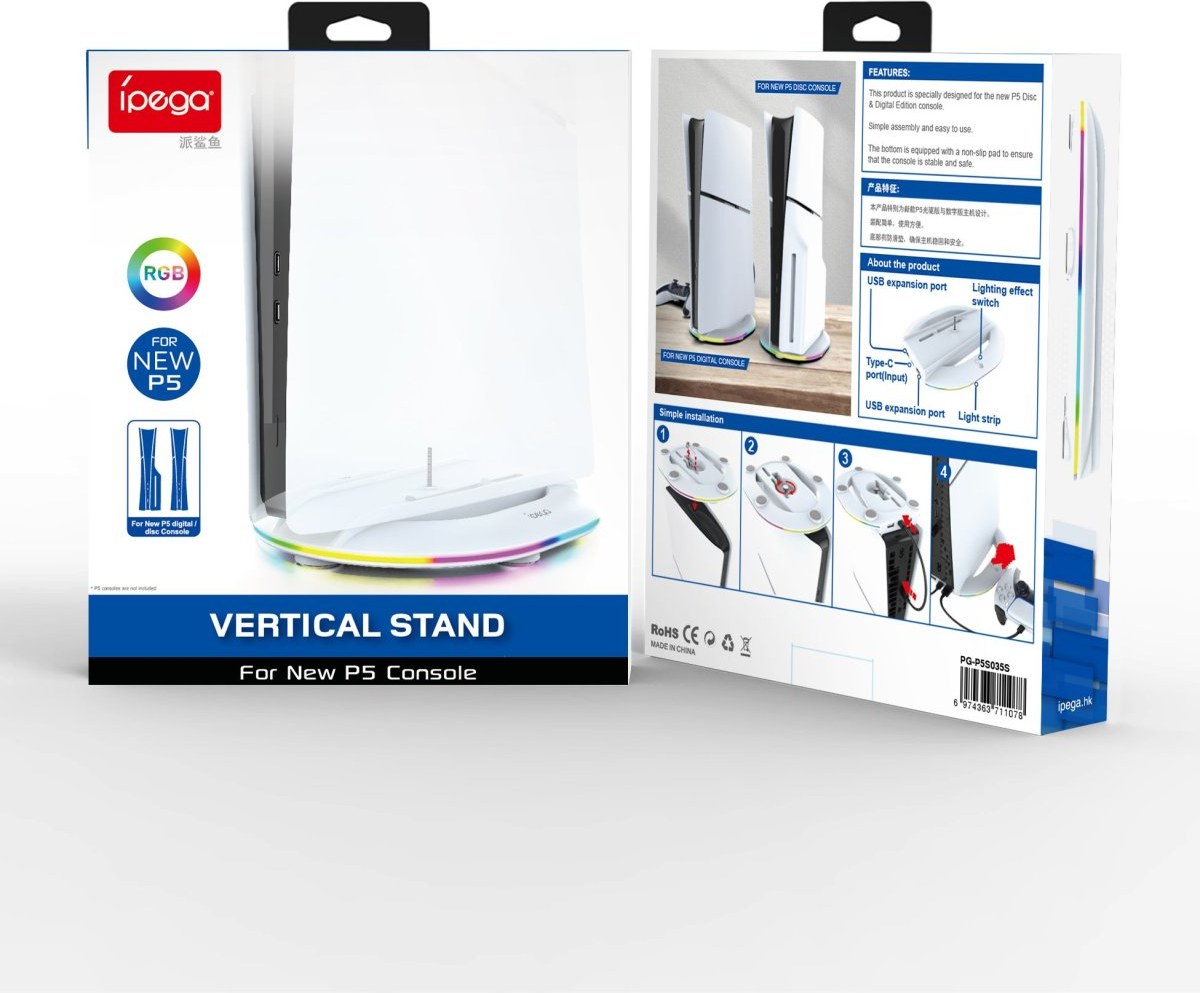 iPega P5S035SA vertikálny stojan, 2xUSB-A s RGB pre PS5 Slim/PS5 Pro, biely