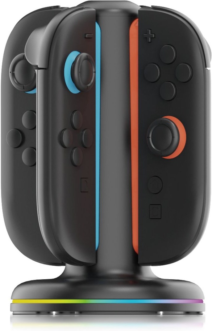 - 4 nabíjacie sloty pre JoyCon ovládače Nintendo Switch 2- Indikátor nabíjania jednotlivých ovládačov