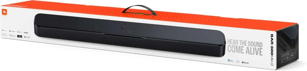 JBL Bar 300 MK2 je kompaktný 5.0-kanálový soundbar typu „všetko v jednom“, ktorý prináša výnimočný zvukový výkon bez potreby samostatného subwoofera. Vďaka maximálnemu výstupnému výkonu 450 W a vstavaným basovým portom poskytuje dynamický a silný zvuk, ktorý naplní aj väčšiu miestnosť. Či už sledujete filmy, hráte hry alebo počúvate hudbu, JBL Bar 300 MK2 vás vtiahne do deja s krištáľovo čistými dialógmi a realistickými zvukovými efektmi.