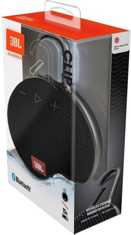 Pripnite a prehrávajte.Ako žiaden iný, je JBL Clip 3 jedinečný ultra prenosný, ultra odolný a vodotesný Bluetooth® reproduktor, ktorý je síce malý, ale s prekvapivo veľkým zvukom. Vylepšená odolnosť a plne integrovaná karabína pre zavesenie na vaše oblečenie, pútko na opasok alebo na batoh, robia z tohto Clip 3 vášho outdoorového spoločníka pri každom dobrodružstve. Reproduktor Clip 3 je IPX7 vodotesný a poskytuje 10 hodín prehrávania, pretože je napájaný 1000 mAh dobíjateľnou Li-ion batériou , vďaka čomu si môžete vziať svoju hudbu so sebou. Vstavaný reproduktor s mikrofónom potláčajúcim šum a ozveny, vám poskytuje krištáľovo čisté telefonické hovory pomocou stlačenia jedného tlačidla.