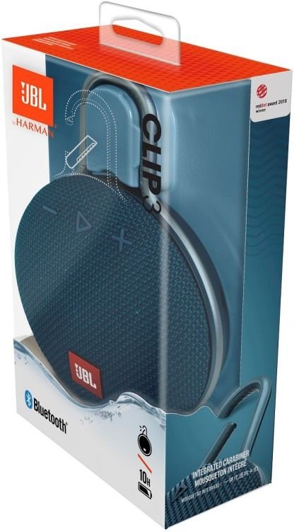 Pripnite a prehrávajte.Ako žiaden iný, je JBL Clip 3 jedinečný ultra prenosný, ultra odolný a vodotesný Bluetooth® reproduktor, ktorý je síce malý, ale s prekvapivo veľkým zvukom. Vylepšená odolnosť a plne integrovaná karabína pre zavesenie na vaše oblečenie, pútko na opasok alebo na batoh, robia z tohto Clip 3 vášho outdoorového spoločníka pri každom dobrodružstve. Reproduktor Clip 3 je IPX7 vodotesný a poskytuje 10 hodín prehrávania, pretože je napájaný 1000 mAh dobíjateľnou Li-ion batériou , vďaka čomu si môžete vziať svoju hudbu so sebou. Vstavaný reproduktor s mikrofónom potláčajúcim šum a ozveny, vám poskytuje krištáľovo čisté telefonické hovory pomocou stlačenia jedného tlačidla.