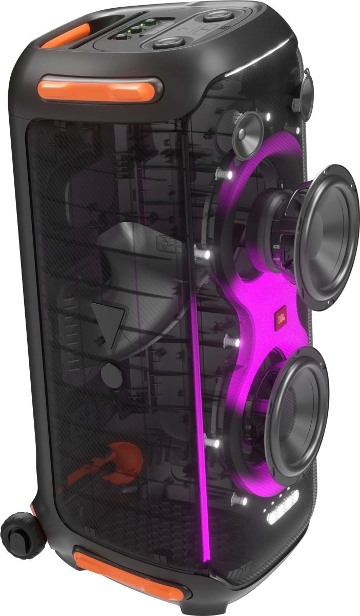 Vytvorte okamžité hudobné spojenie s 800 výkonnými wattmi vysokovýkonného zvuku JBL Original Pro Sound. Duálne 2,75" tweetery a 8" woofery spárované s jeho vyladeným bassreflex portom poskytujú detailnú dokonalosť zvuku pre hudbu tak hlasnú, že doslova cítite rytmus.
