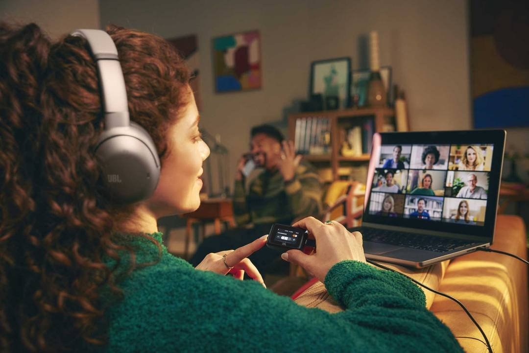S JBL Smart Tx sa pripojíte takmer k akémukoľvek zdroju zvuku – digitálnemu cez USB-C, analógovému cez 3,5 mm konektor, alebo bezdrôtovo cez Bluetooth. Vďaka tomu zvládnete aj palubné zábavné systémy v lietadle, televízor či počítač. Dotykový displej vysielača vám poskytne plný prístup k ovládaniu bez nutnosti aplikácie. S 18-hodinovou výdržou batérie si užijete aj najdlhší let. Navyše môžete prostredníctvom Auracast™ zdieľať hudbu či filmy s ďalšími kompatibilnými zariadeniami vo vašom okolí.8 mikrofónov s ANC 2.0