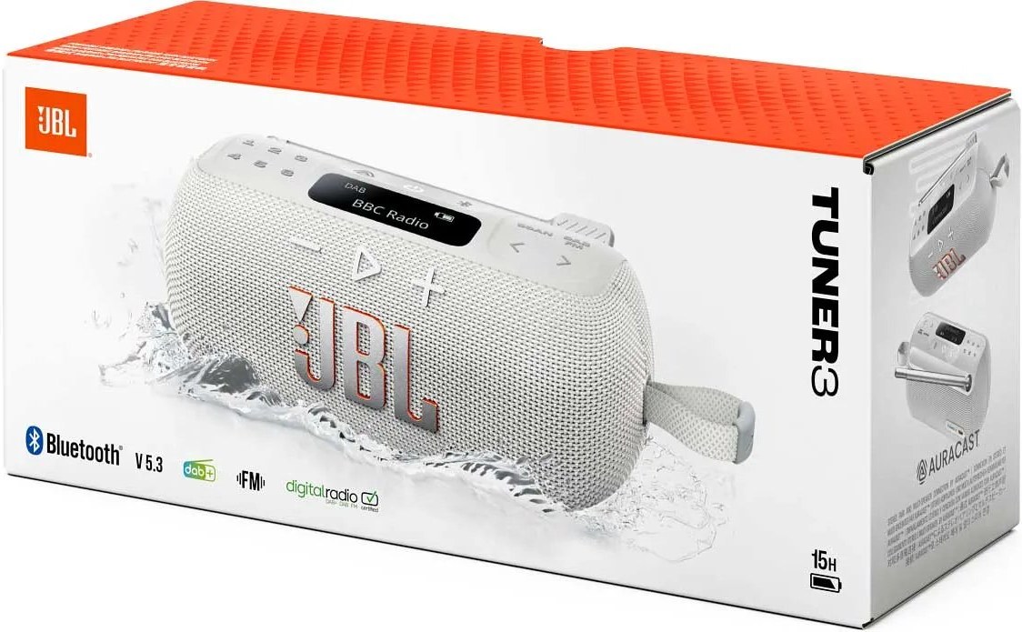 JBL Tuner 3 je výkonné, prenosné rádio navrhnuté pre moderný rozhlasový zážitok. Vďaka podpore DAB/DAB+/FM vysielania a bezdrôtovému streamovaniu cez Bluetooth poskytuje krištáľovo čistý zvuk JBL Pro Sound kdekoľvek – doma, pri bazéne, na výlete či v prírode. Jeho kompaktný dizajn, odolnosť voči vode a prachu, a dlhá výdrž batérie robia z tohto zariadenia ideálneho spoločníka na každý deň.Krištáľovo čistý zvuk JBL Pro Sound