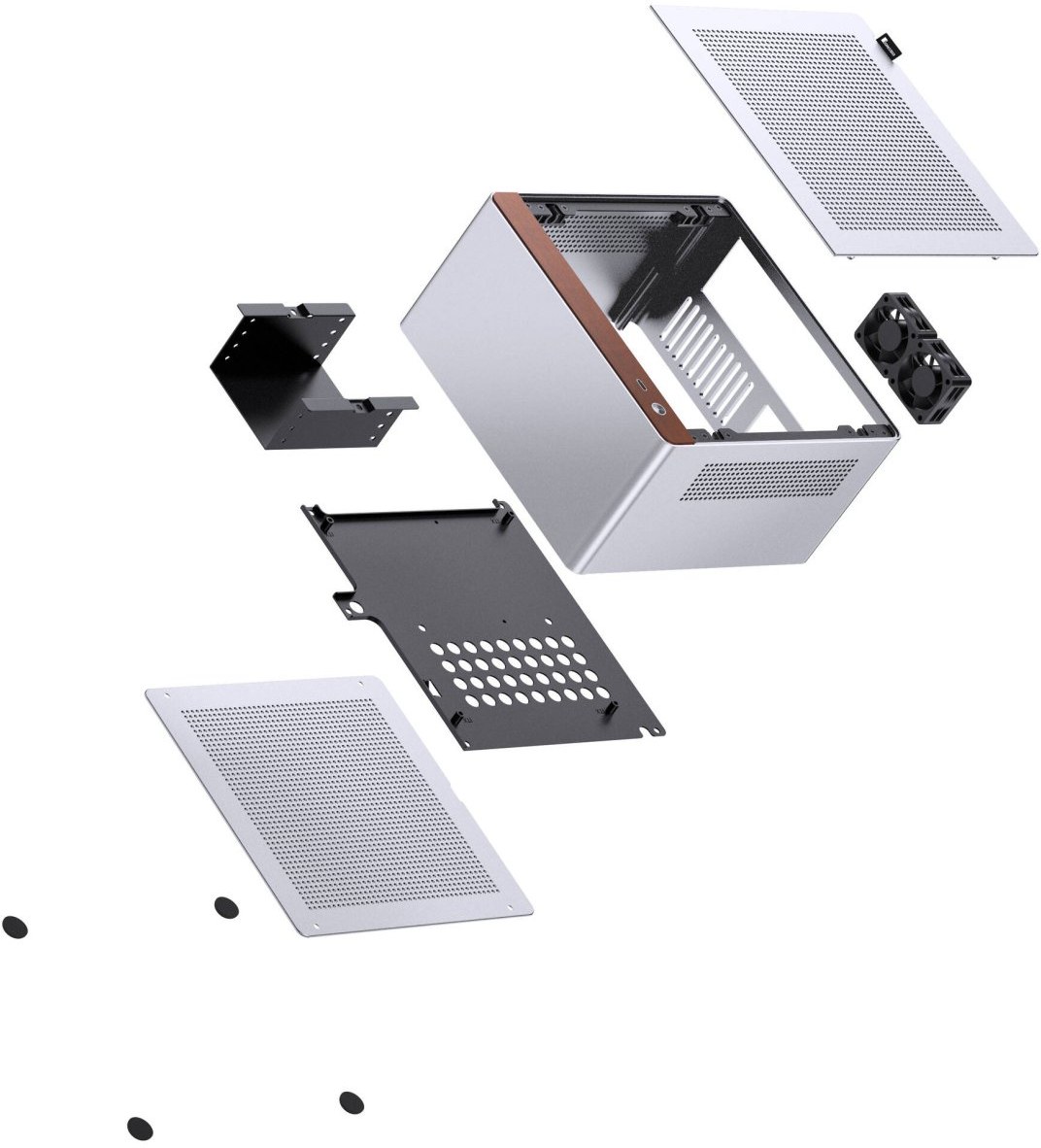 PC skrinka, Mini ITX, max. výška chladiča 38 mm, 4× 2,5", bez bočného okna, horné konektory, striebornáZobraziť viac