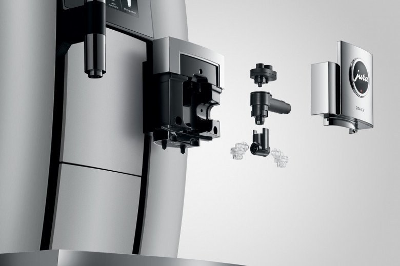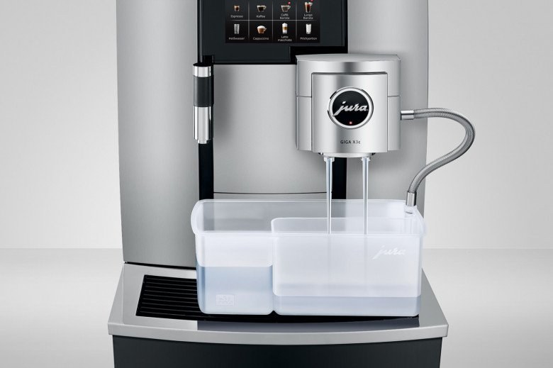Rovnako jednoducho, logicky a intuitívne ako ovládanie funguje aj starostlivosť o prístroj GIGA X3c. Originálne údržbové produkty JURA a integrované programy preplachovania a čistenia sú garanciou toho, že hygienu podľa pravidiel certifikácie TÜV dosiahnete jednoduchým stlačením jedného tlačidla. Rovnako sofistikovane pracuje aj čistenie mliečneho systému. Spustí sa buď automaticky alebo voliteľne dotykom dotykového displeja, vždy však zaručí perfektnú čistotu pri narábaní s mliekom. Masívny kombinovaný výtok dokážete veľmi ľahko rozložiť. Výtoky a dýzy na mlieko sú v ňom uložené tak, aby boli ľahko prístupné a v prípade potreby sa dali jednoducho vymeniť.