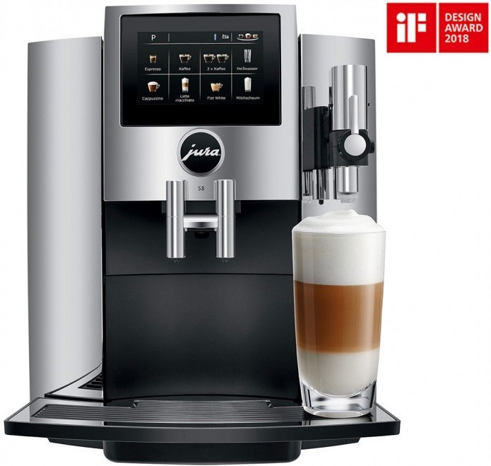Jasné, symetrické tvary a harmonické línie modelu JURA S8 mu dodávajú už na prvý pohľad elegantný vzhľad. Zušľachtené materiály a láska k detailu tvoria celkový dizajn, ktorý vyžaruje harmóniu a pokoj. Symbolom vysokej kvality je kryt zásobníka na zrnkovú kávu z ručne lešteného zinkového tlakového odliatku. Podrobnosti a cielené akcenty robí tento model jedinečným. To ocenila aj porota prestížnej dizajnovej súťaže iF Design Award, na ktorej sa JURA s týmto modelom zúčastnila. Táto súťaž patrí medzi najsledovanejšie ocenenie priemyselného dizajnu, ktorá hodnotí produkty z celého sveta už od roku 1953.