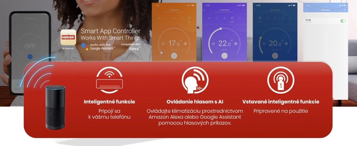 klimatizáciu môžete jednoducho ovládať cez smartfón alebo hlasom (Amazon Alexa, Google Assistant)Presné riadenie teploty
