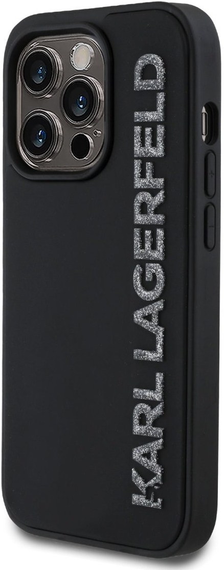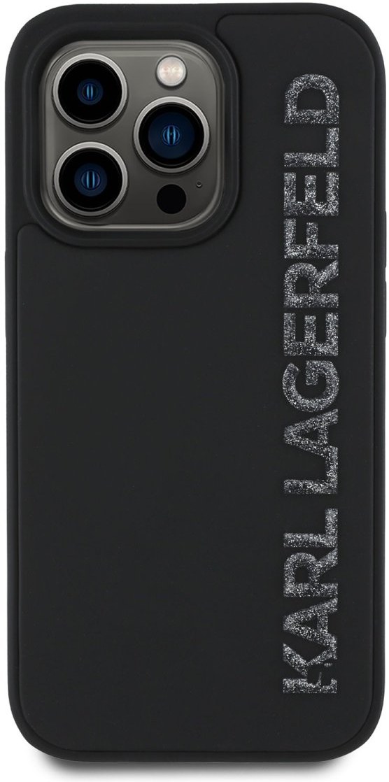 Karl Lagerfeld 3D Rubber Glitter Logo kryt pre iPhone 14 Pro, čierny