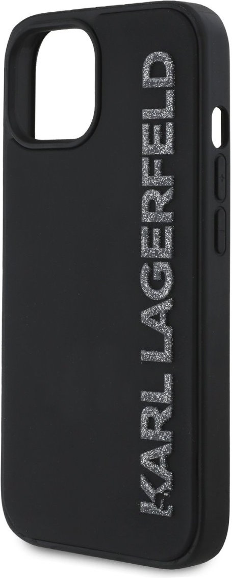 Karl Lagerfeld 3D Rubber Glitter Logo kryt pre iPhone 15, čierny