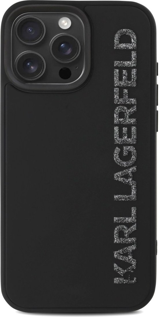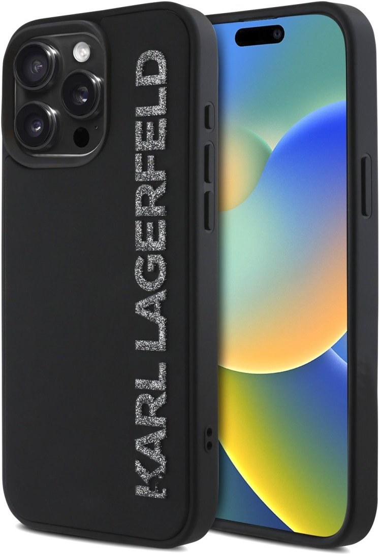 Karl Lagerfeld 3D Rubber Glitter Logo kryt pre iPhone 15 Pro, čierny