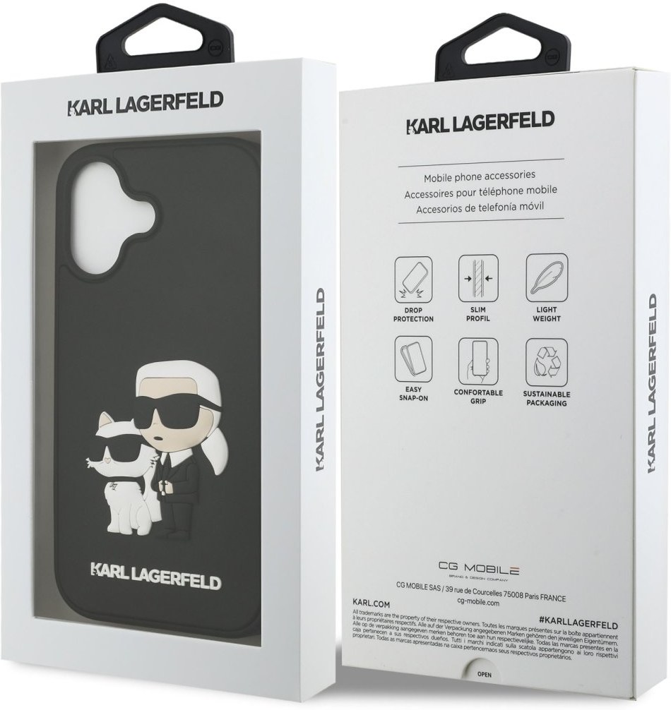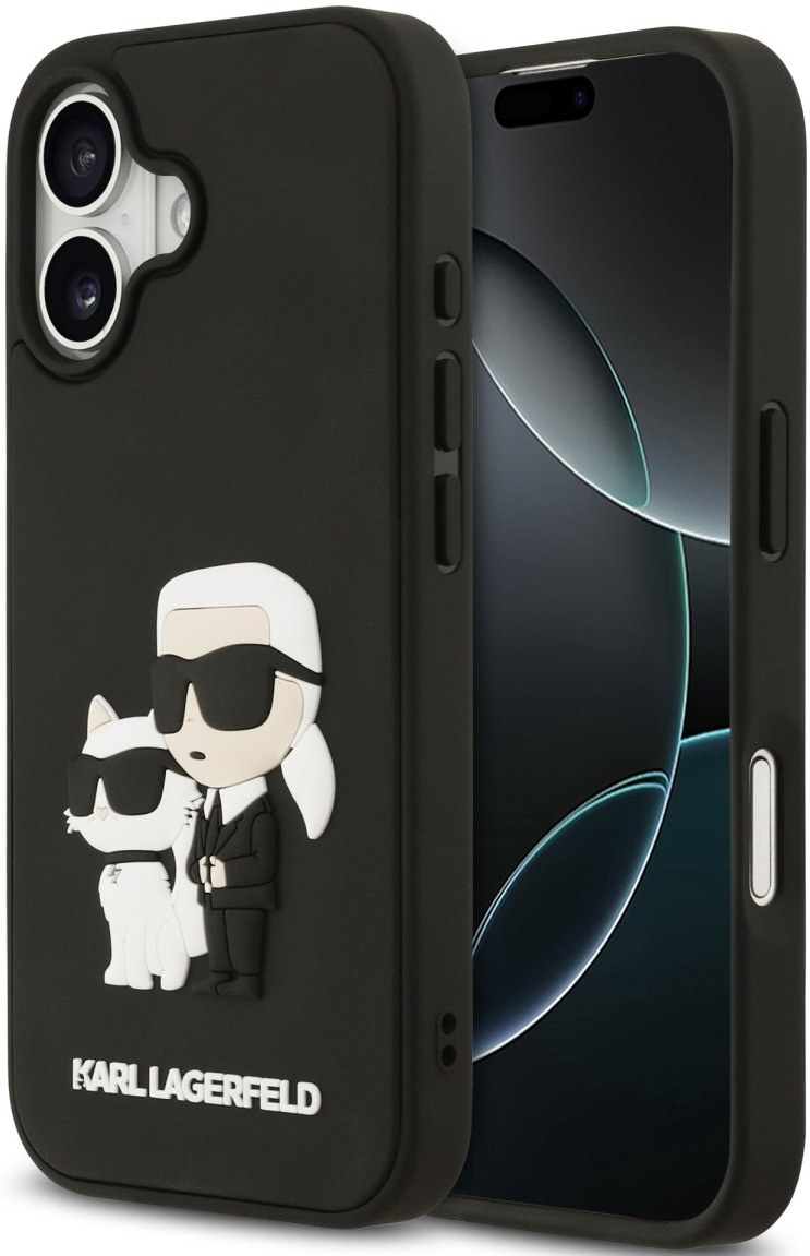 Karl Lagerfeld 3D Rubber Karl and Choupette kryt pre iPhone 17, čierny