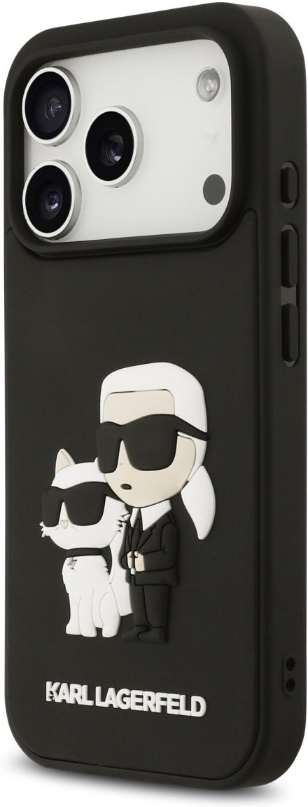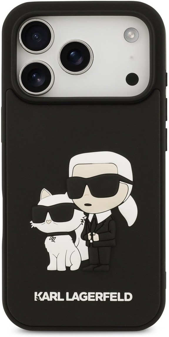 Karl Lagerfeld 3D Rubber Karl and Choupette kryt pre iPhone 17 Pro, čierny