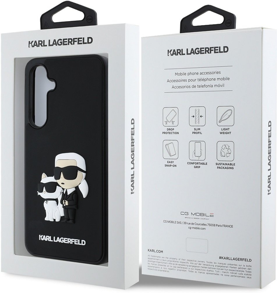 Karl Lagerfeld 3D Rubber Karl and Choupette kryt pre Samsung Galaxy S24 FE, čierny