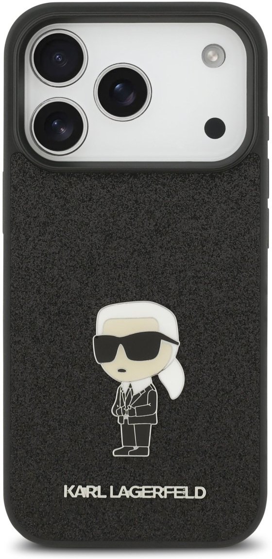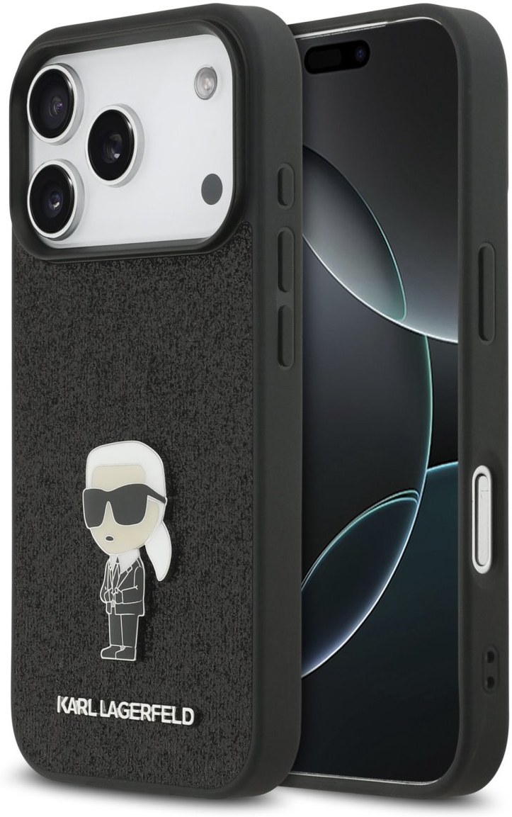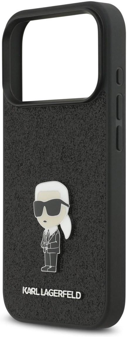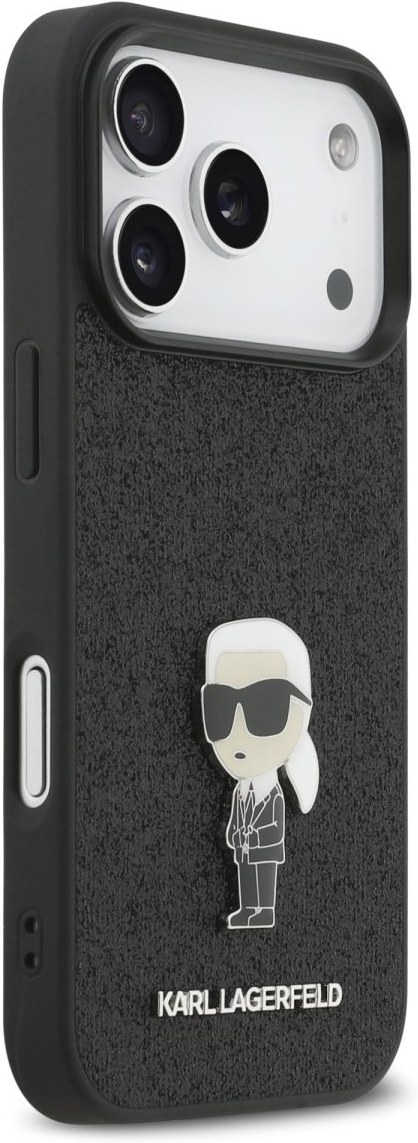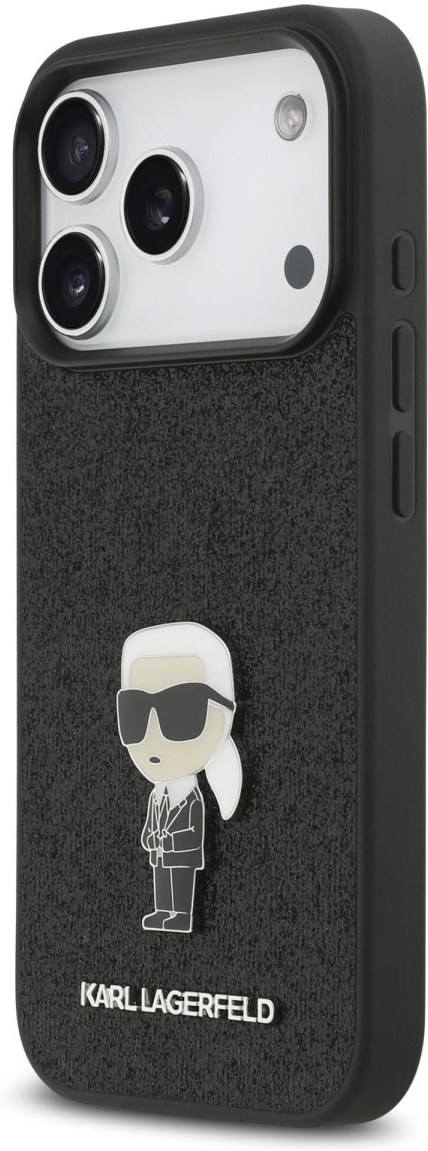Karl Lagerfeld Fixed Glitter Metal Ikonik kryt pre iPhone 17 Pro, čierny