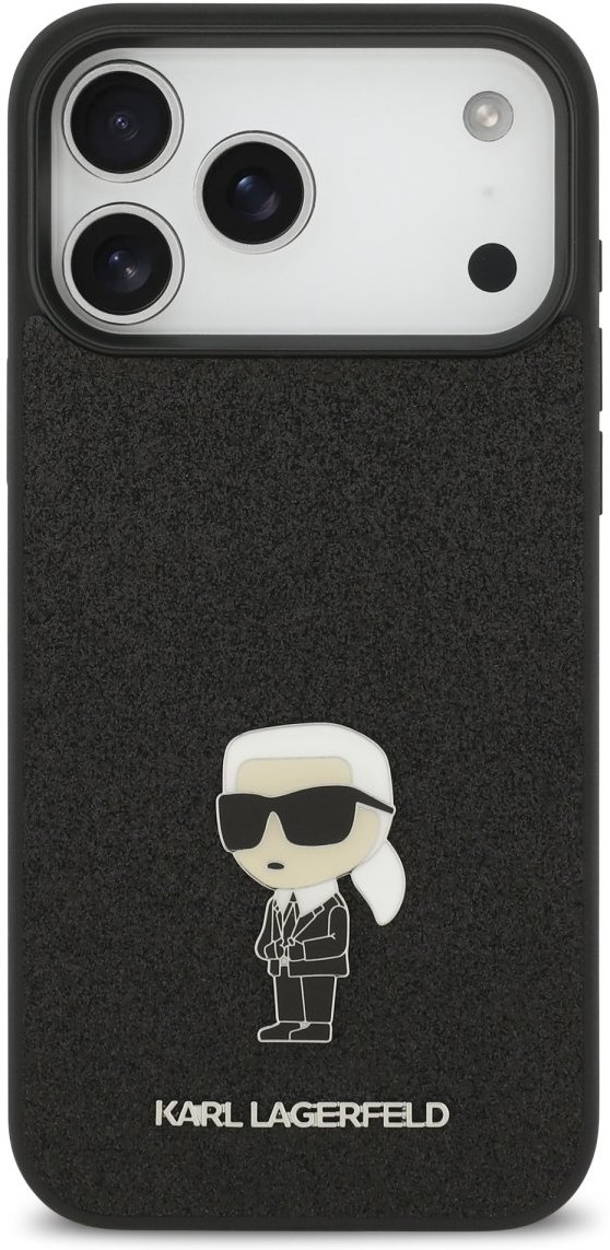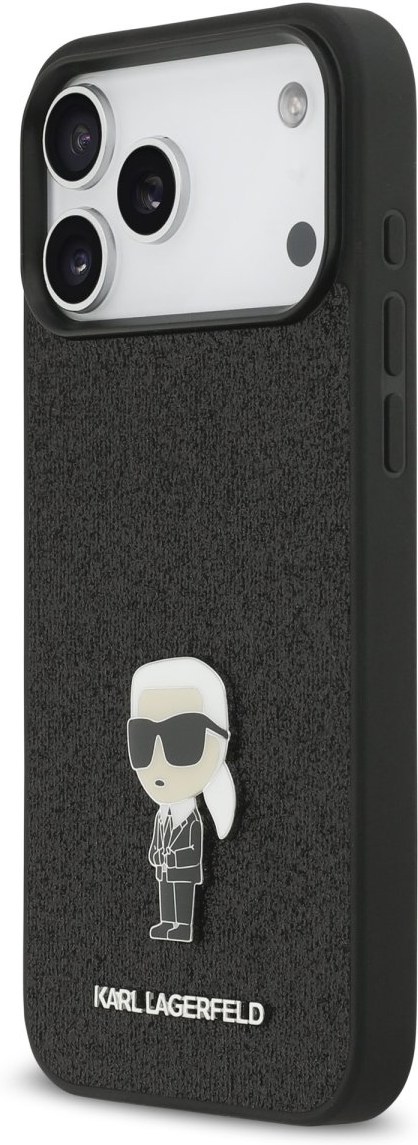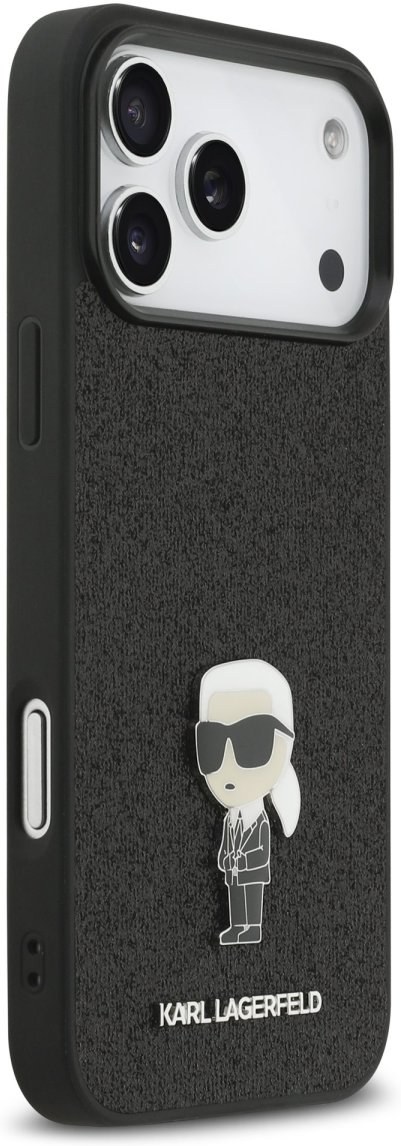 Karl Lagerfeld Fixed Glitter Metal Ikonik kryt pre iPhone 17 Pro Max, čierny