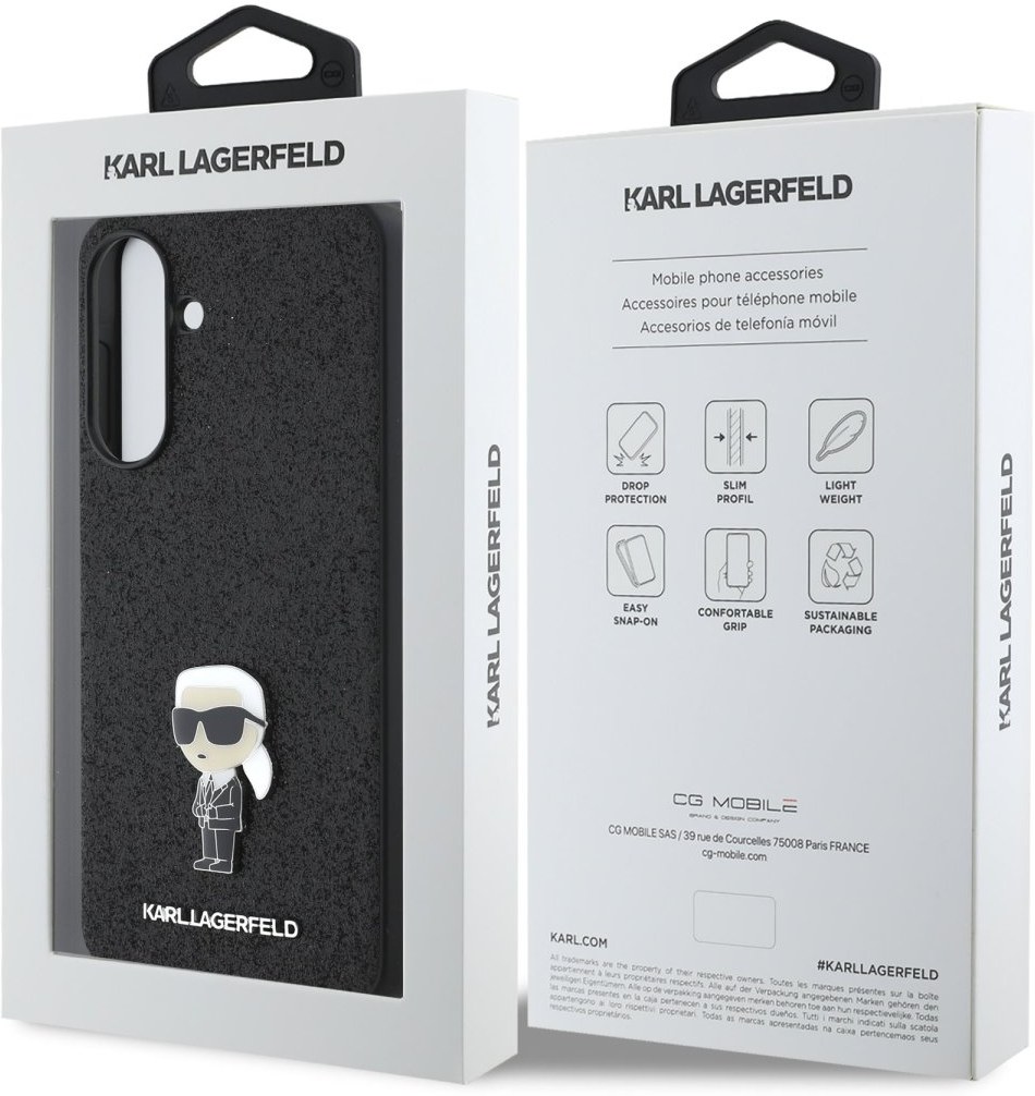 - Kovové logo ikoník Karl Lagerfeld na zadnej strane