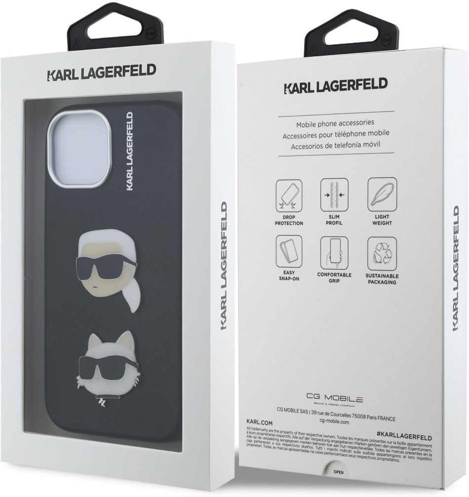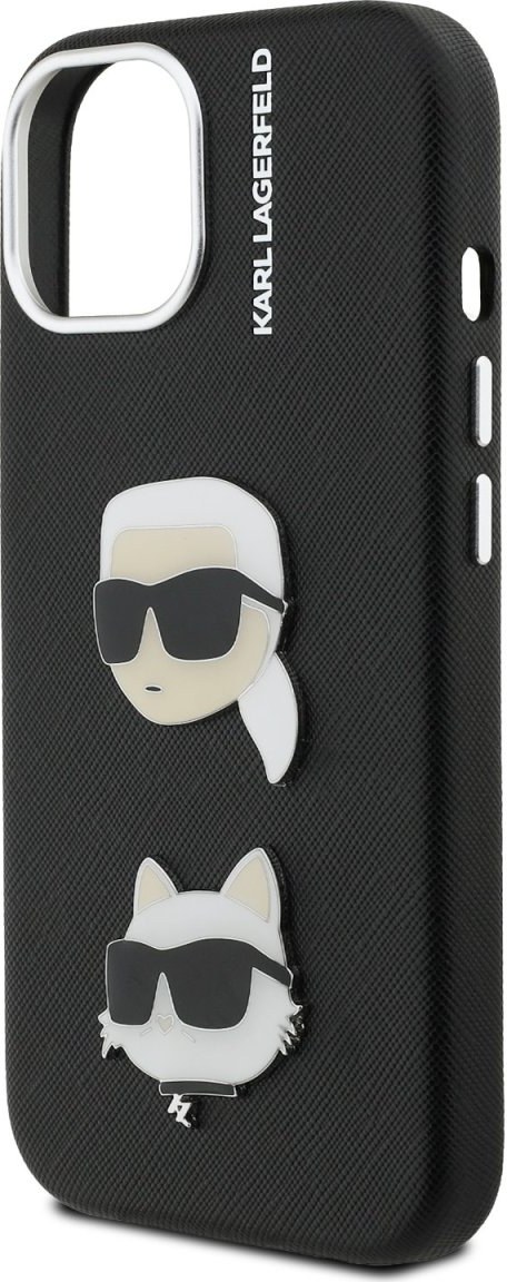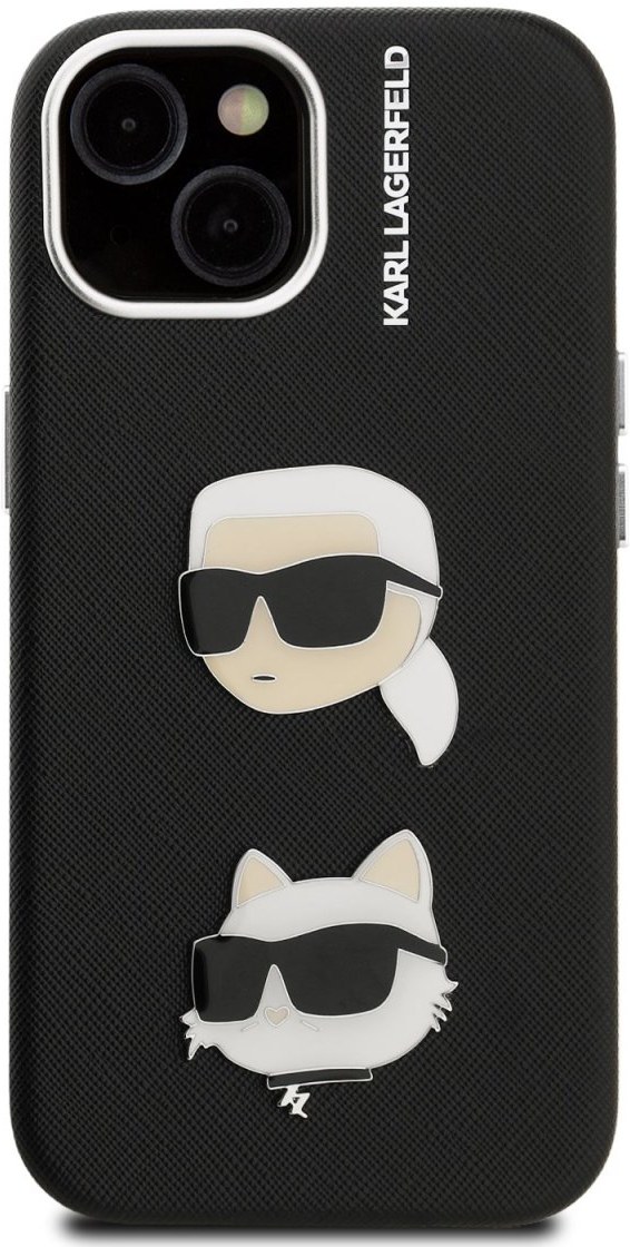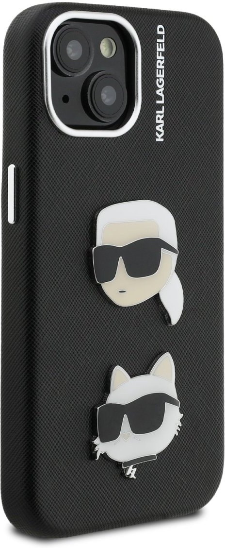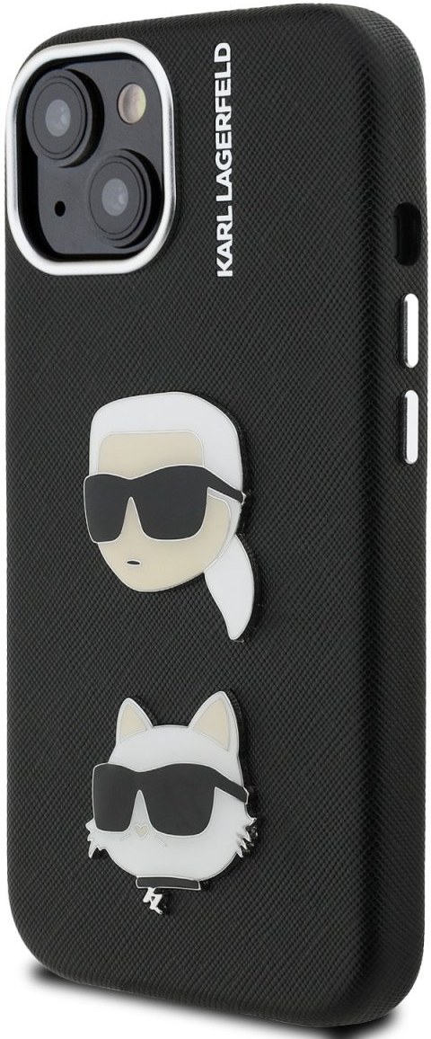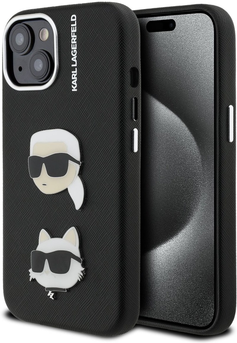 Karl Lagerfeld Grained PU K&CH Heads kryt pre iPhone 15, čierny