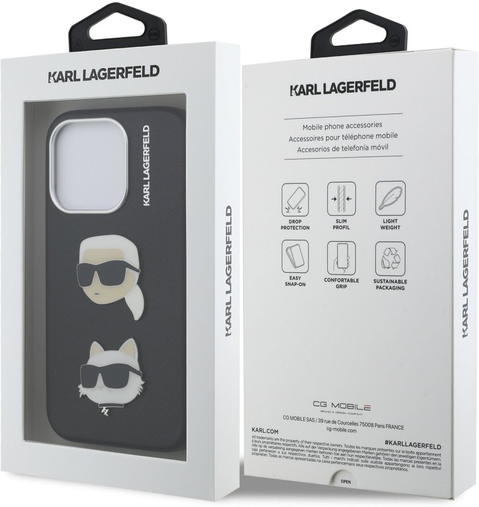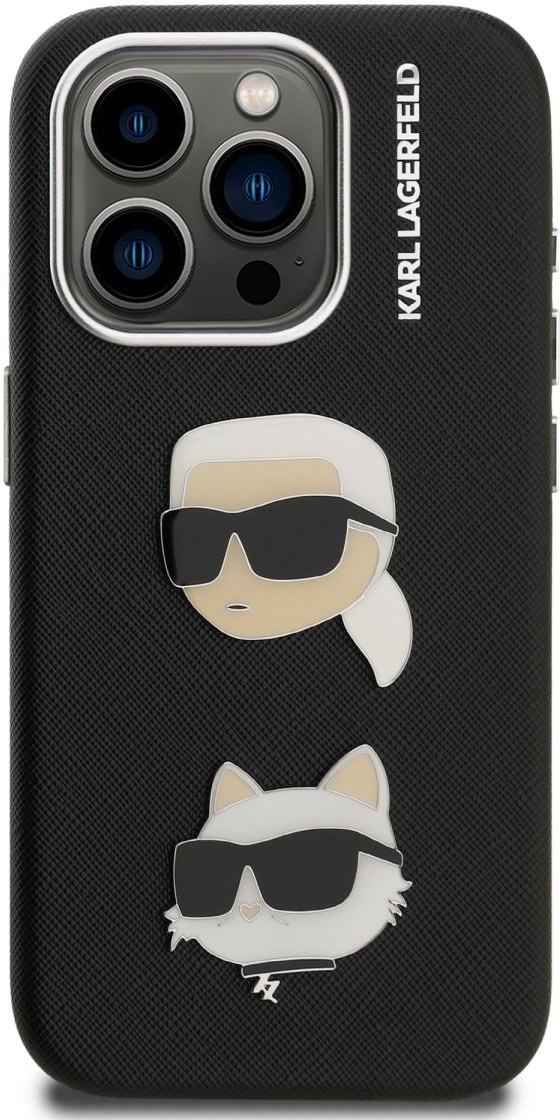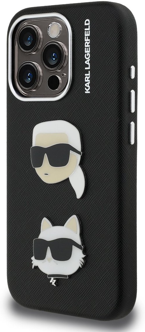 Karl Lagerfeld Grained PU K&CH Heads kryt pre iPhone 15 Pro, čierny