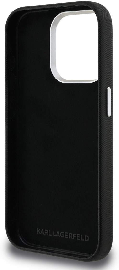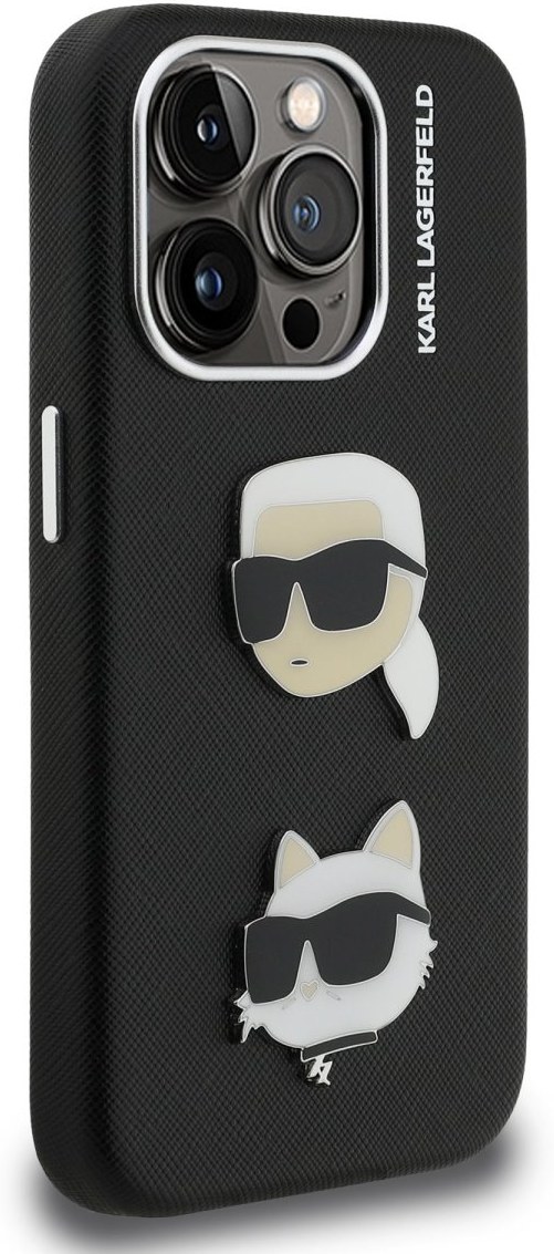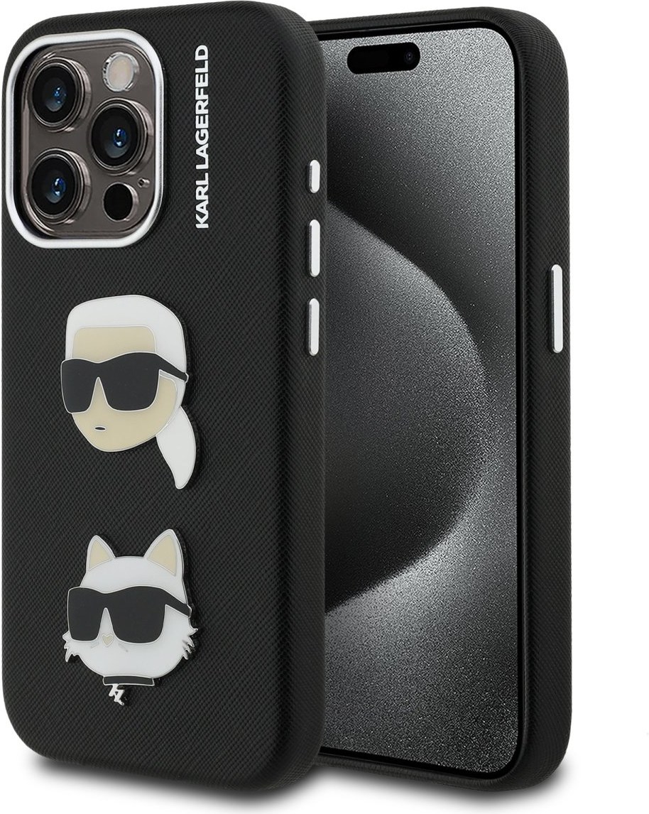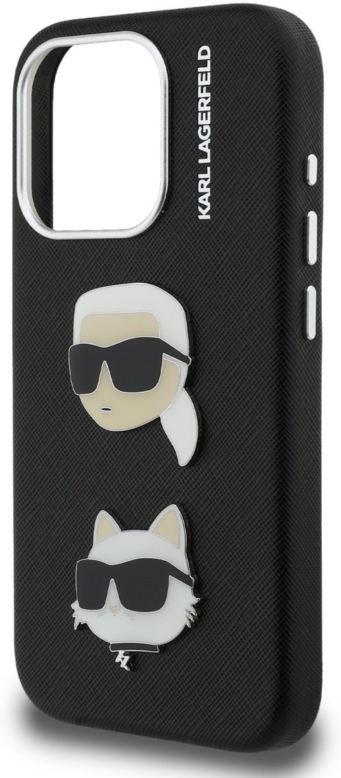 Karl Lagerfeld Grained PU K&CH Heads kryt pre iPhone 15 Pro Max, čierny