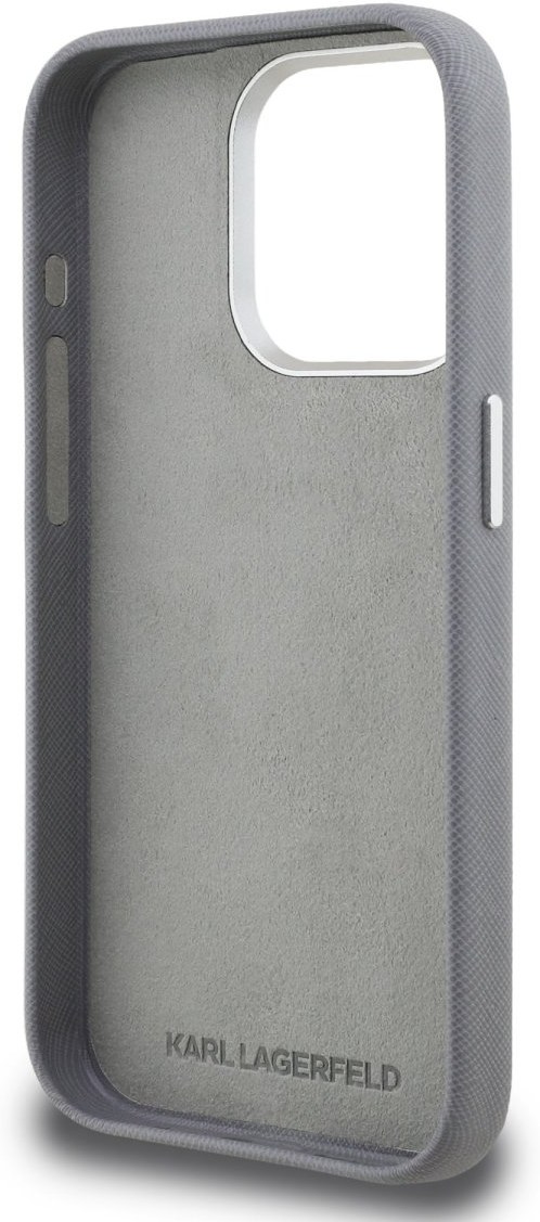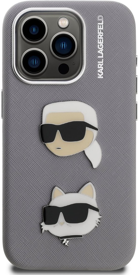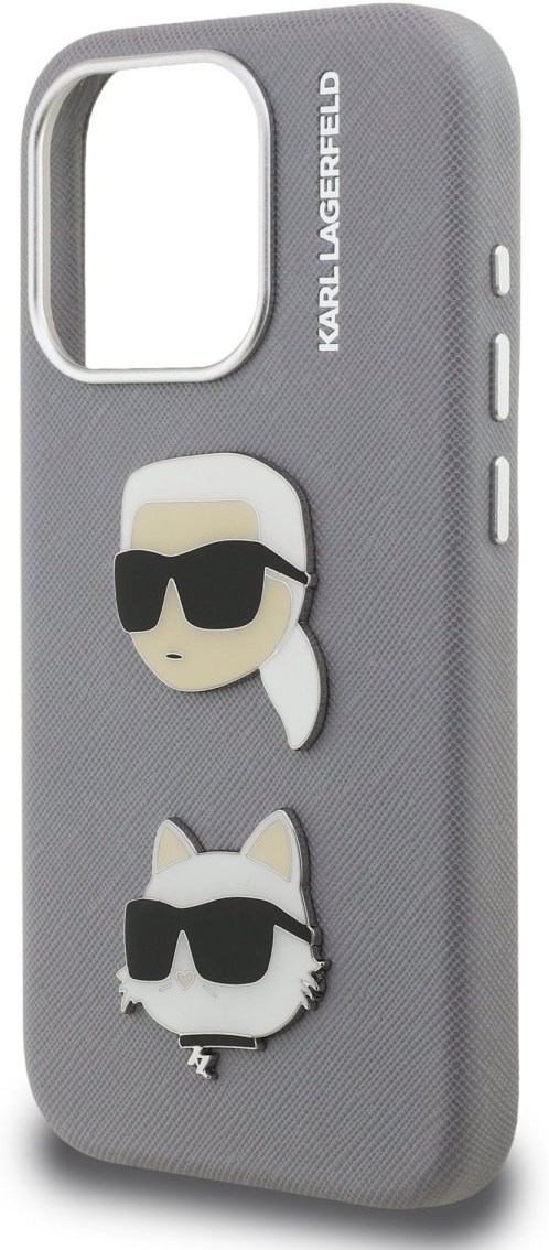 Karl Lagerfeld Grained PU K&CH Heads kryt pre iPhone 15 Pro, sivý