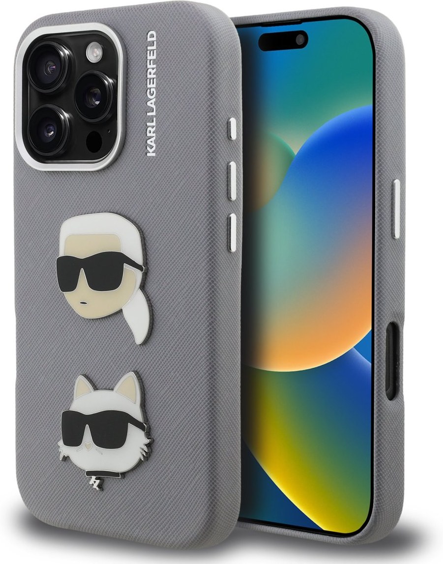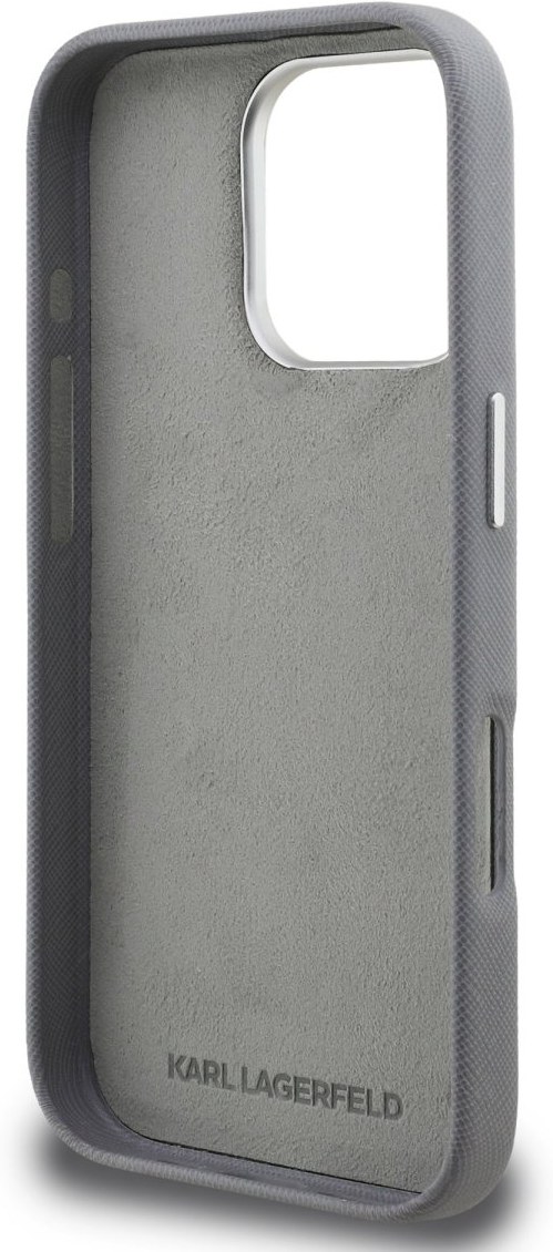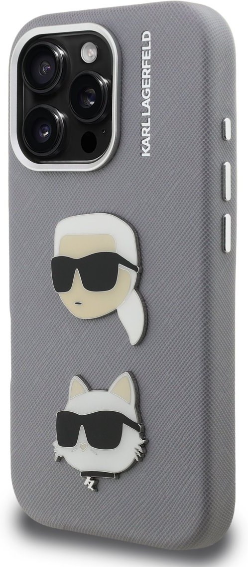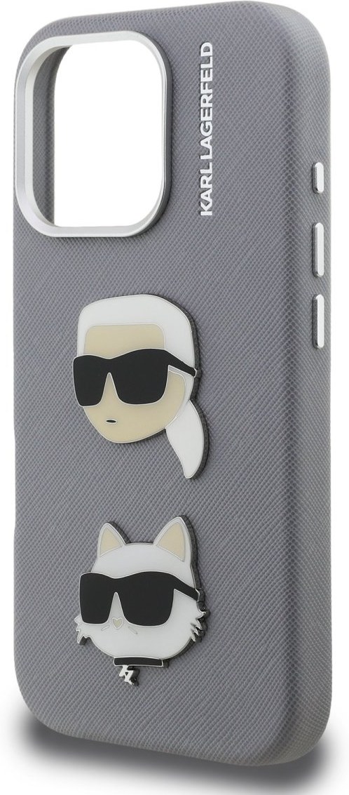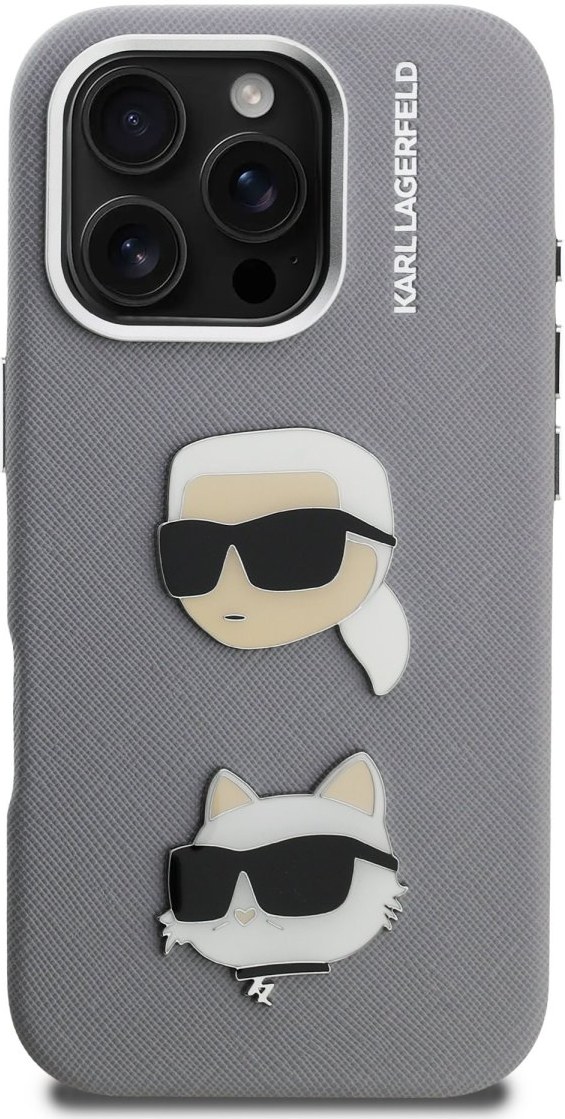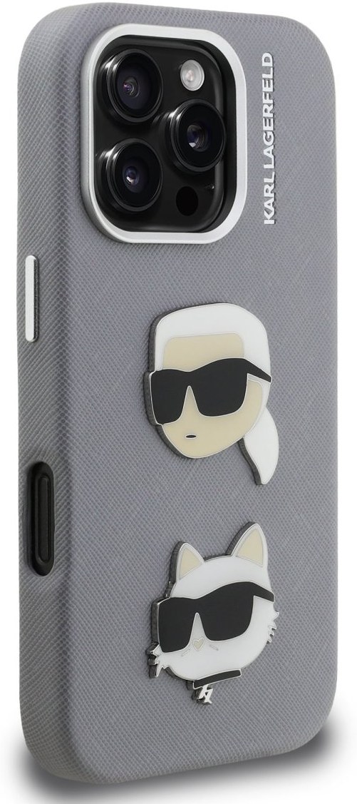 Karl Lagerfeld Grained PU K&CH Heads kryt pre iPhone 16 Pro, sivý