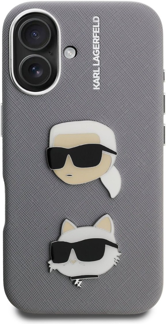 Karl Lagerfeld Grained PU K&CH Heads kryt pre iPhone 16, sivý