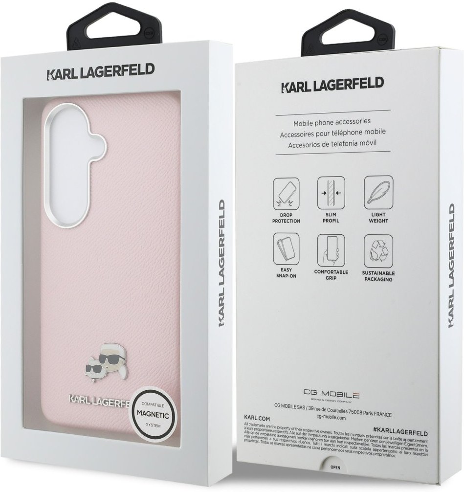 Karl Lagerfeld Grained PU Leather K&CH Heads Magnetic kryt pre Samsung Galaxy S26+, ružový