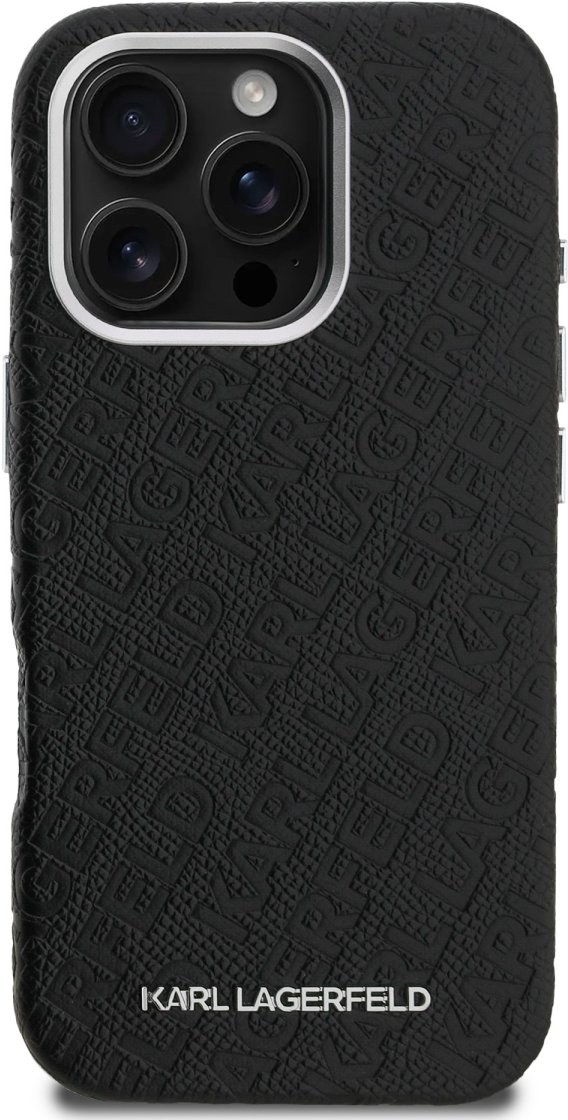 Karl Lagerfeld Grained PU Repeated Logo MagSafe kryt pre iPhone 16 Pro, čierny