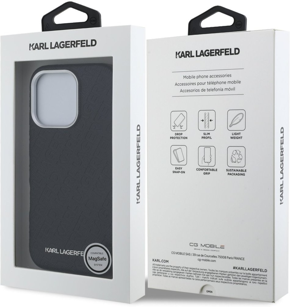 Karl Lagerfeld Grained PU Repeated Logo MagSafe zadný kryt je dokonalý doplnok pre váš telefón aj outfit, ktorý kombinuje funkčnosť a štýl v jednom. Je vyrobený z ľahkého a odolného PU s textúrou zrnitej kože a ponúka skvelú ochranu a pohodlie pri používaní. Povrchová úprava krytu zaisťuje, že sa skvele drží v ruke a nešmýka sa, čo minimalizuje riziko vykĺznutia telefónu. Vďaka presnému tvaru perfektne sedí na telefóne a umožňuje ľahký prístup ku všetkým tlačidlám a konektorom. Tento kryt podporuje technológiu MagSafe, čo znamená, že je kompatibilný s bezdrôtovým nabíjaním a ďalšími MagSafe doplnkami. Elegantné opakujúce sa logo vyrazené do PU kože ponúka nielen decentný, ale aj luxusný vzhľad. Pokiaľ teda hľadáte kryt, ktorý kombinuje eleganciu a funkčnosť, je tento kúsok od Karla Lagerfelda tou pravou voľbou pre vás.Kľúčové vlastnosti