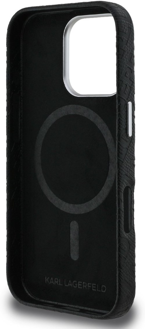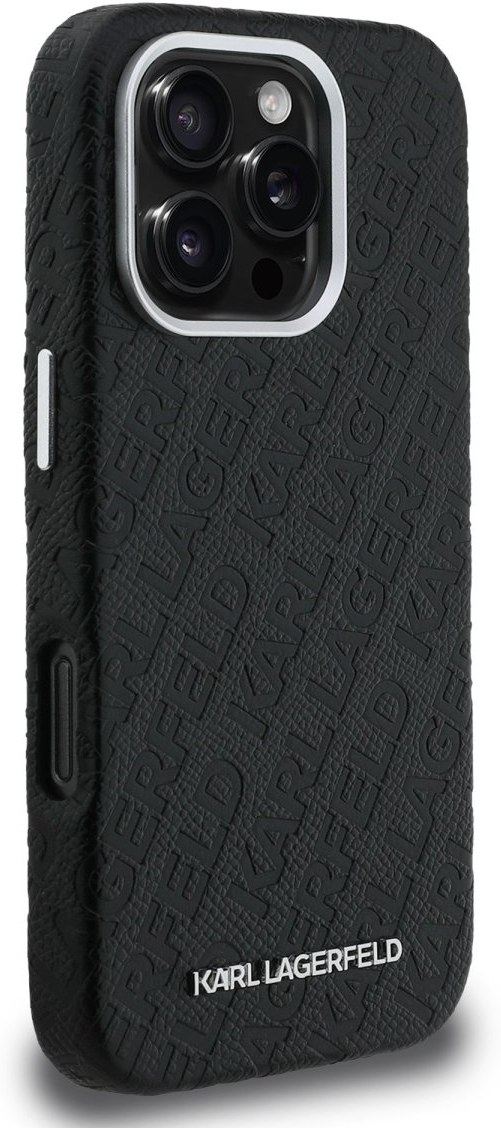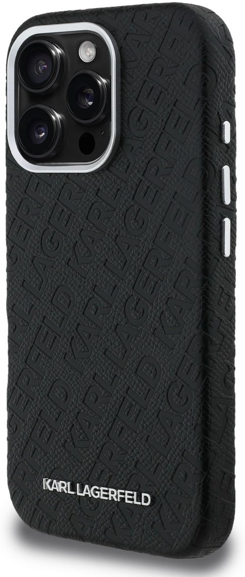 Karl Lagerfeld Grained PU Repeated Logo MagSafe kryt pre iPhone 16 Pro Max, čierny
