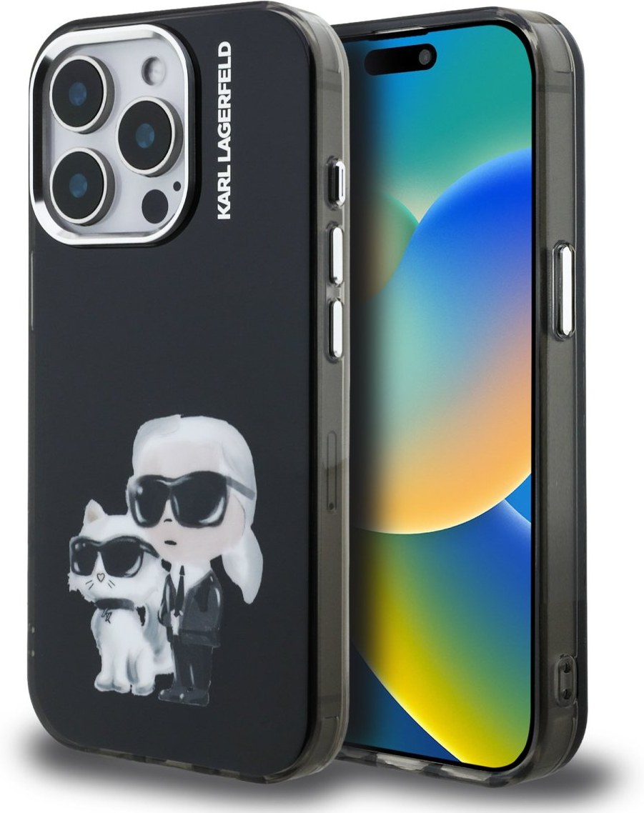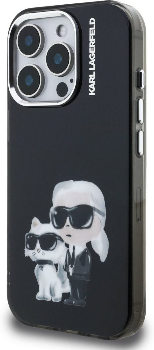 Karl Lagerfeld IML Aquarelle Karl and Choupette kryt pre iPhone 15 Pro Max, čierny