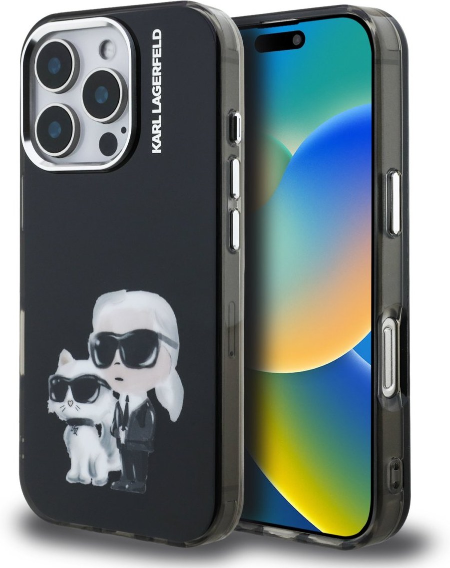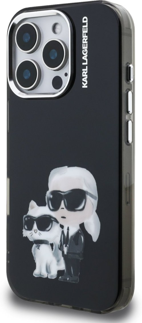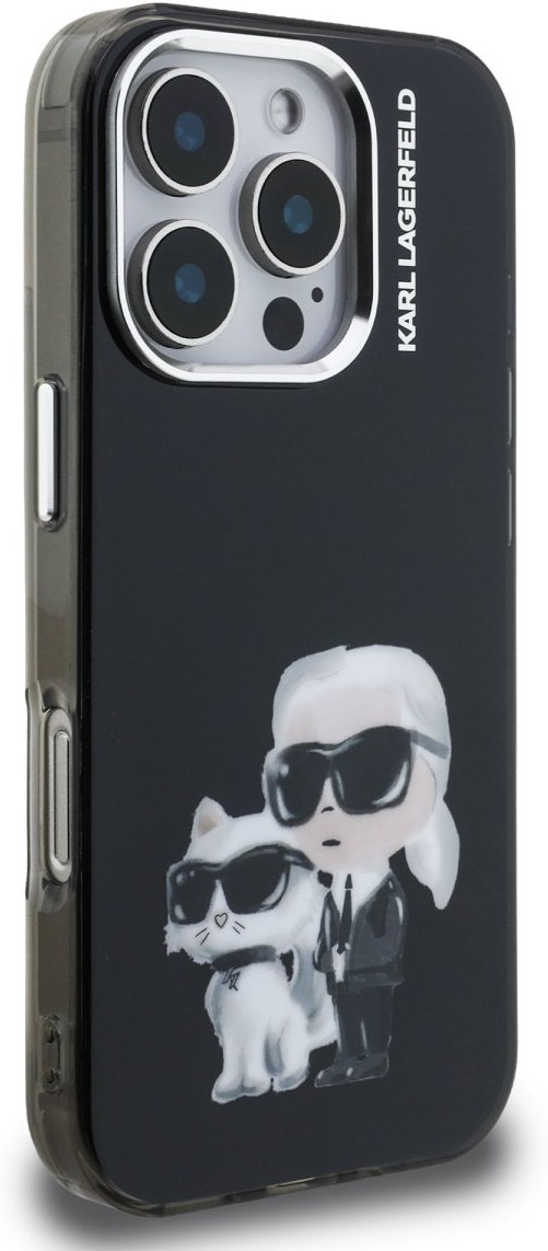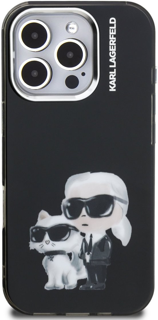 Karl Lagerfeld IML Aquarelle Karl and Choupette kryt pre iPhone 16 Pro, čierny