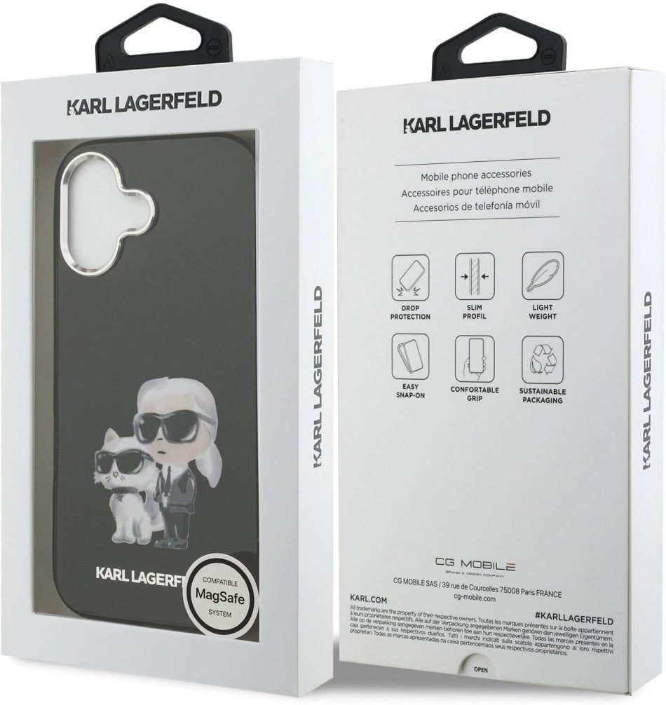 Karl Lagerfeld IML Aquarelle Karl and Choupette kryt pre iPhone 17, čierny