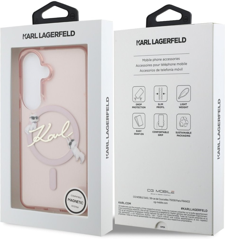 Karl Lagerfeld IML Choupette Karl Script Logo Magnetic kryt pre Samsung Galaxy S26, ružový