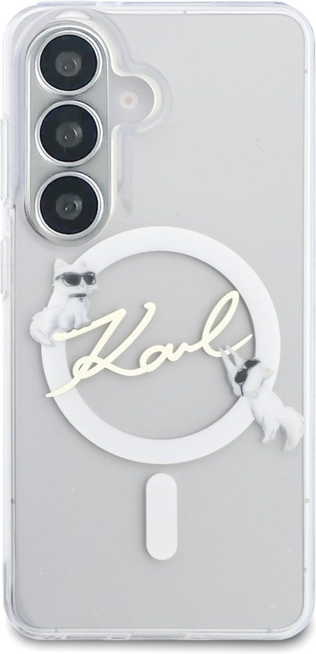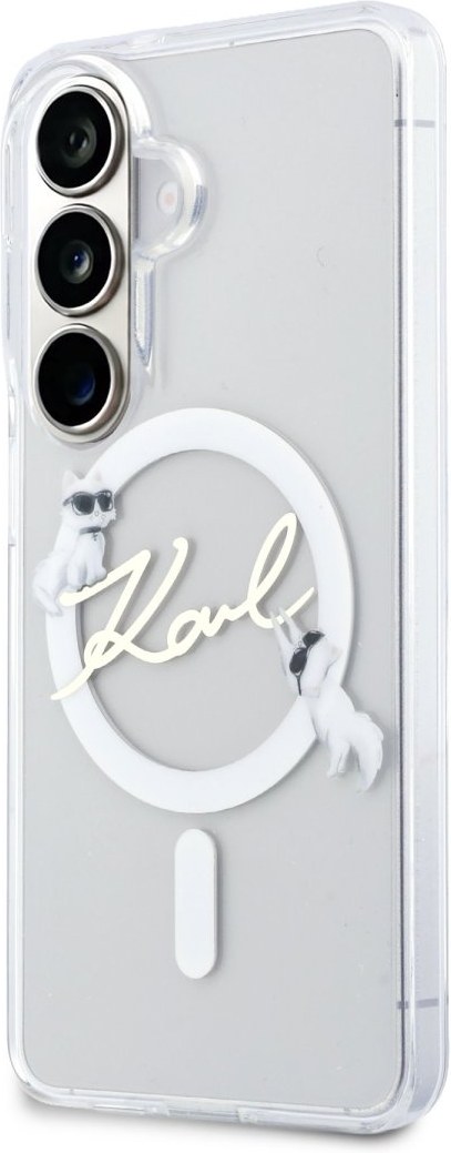 Karl Lagerfeld IML Choupette Karl Script Logo Magnetic kryt pre Samsung Galaxy S26, transparentný