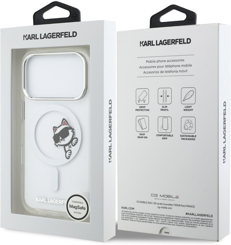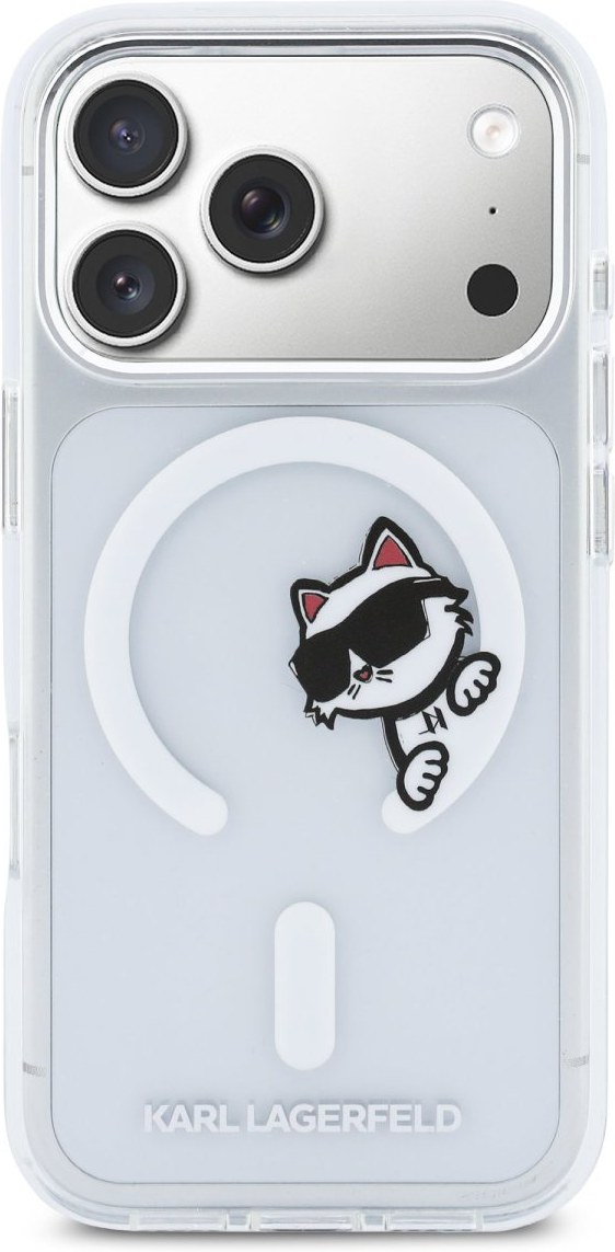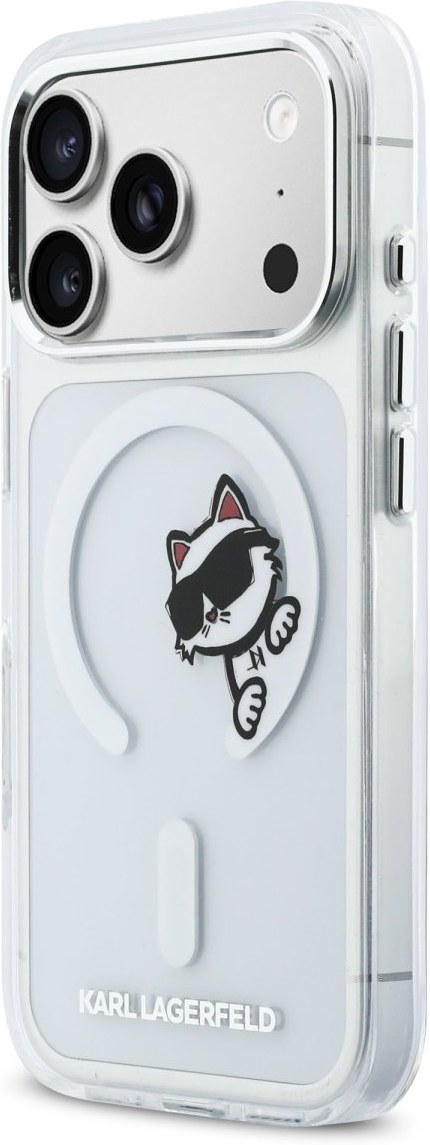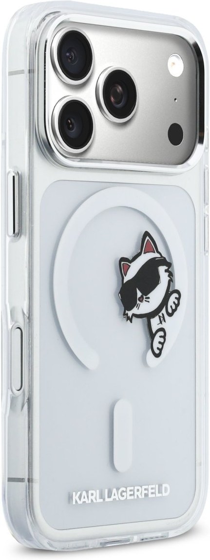Karl Lagerfeld IML Choupette Peekaboo MagSafe kryt pre iPhone 17 Pro, transparentný