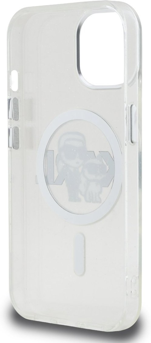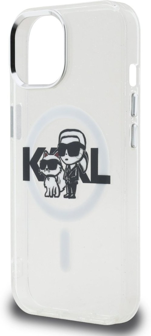 Karl Lagerfeld IML Glitter Karl and Choupette Sketch MagSafe kryt pre iPhone 15, transparentný