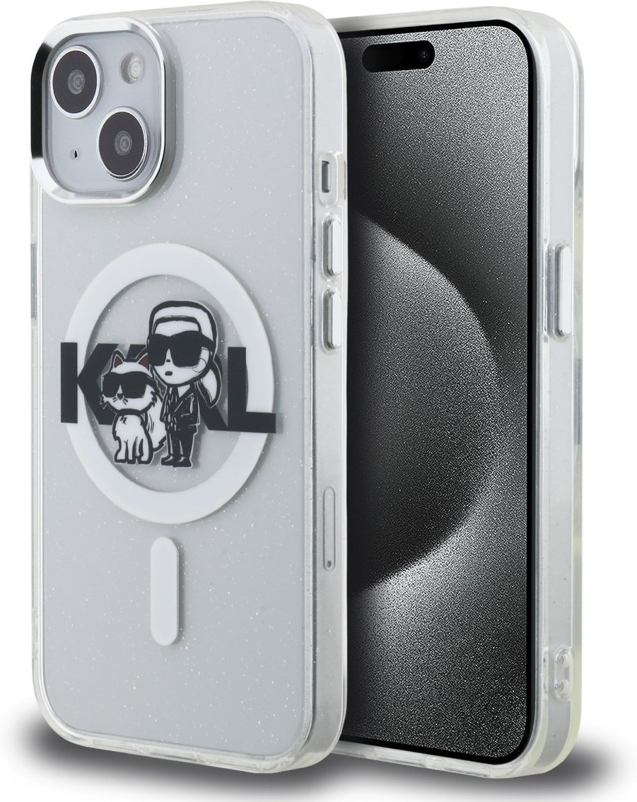 Karl Lagerfeld IML Glitter Karl and Choupette Sketch MagSafe kryt pre iPhone 15
