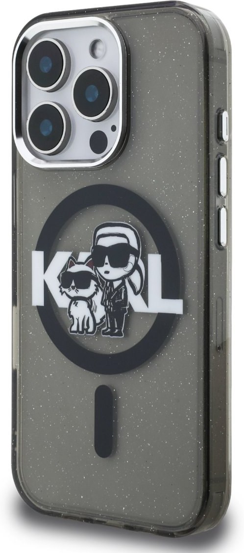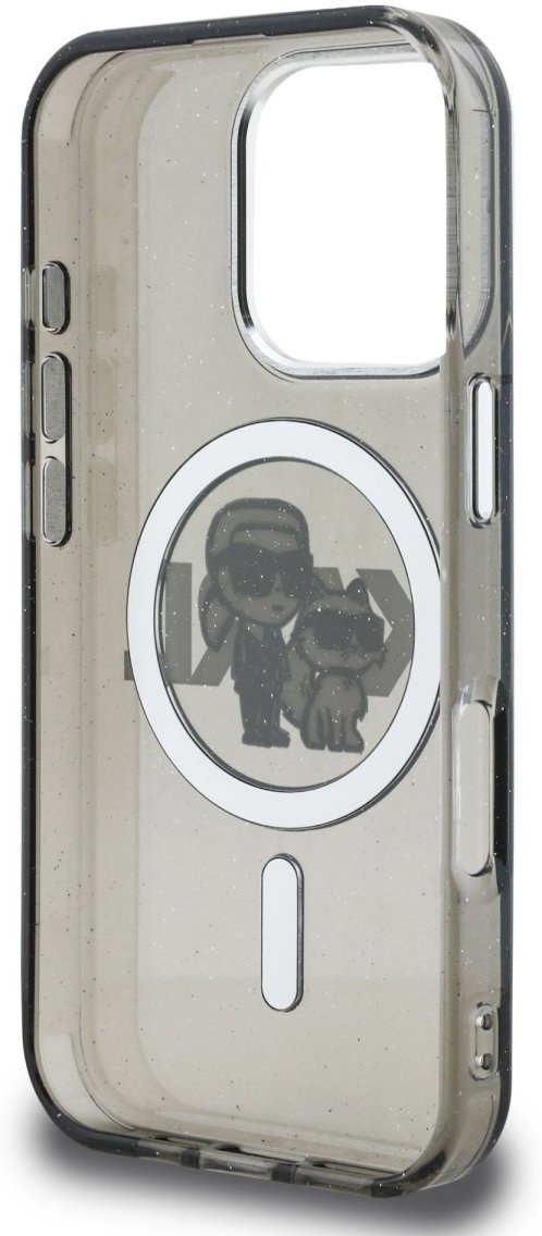 Karl Lagerfeld IML Glitter Karl and Choupette Sketch MagSafe kryt pre iPhone 16 Pro, čierny