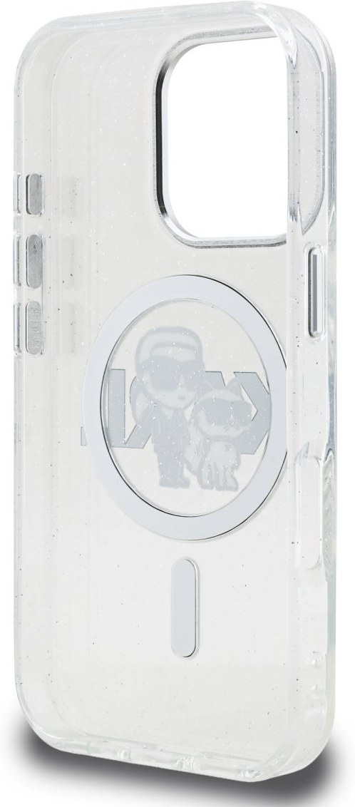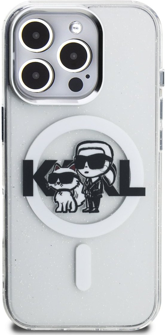 Karl Lagerfeld IML Glitter Karl and Choupette Sketch MagSafe kryt pre iPhone 16 Pro Max, transparentný