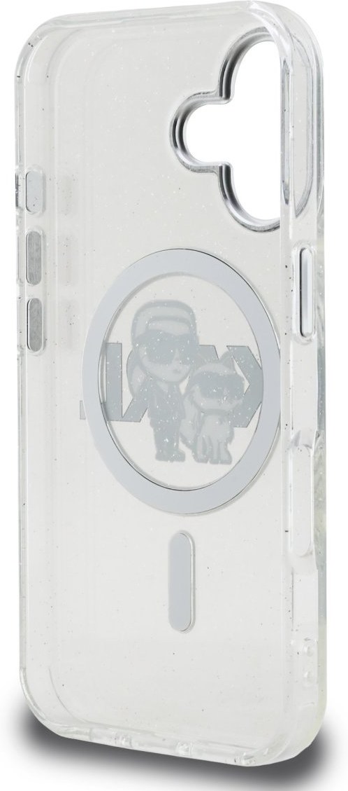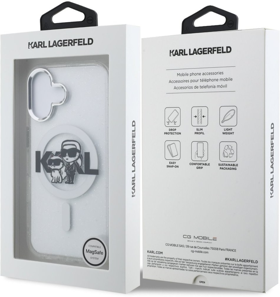 Karl Lagerfeld IML Glitter Karl and Choupette Sketch MagSafe kryt pre iPhone 16, transparentný