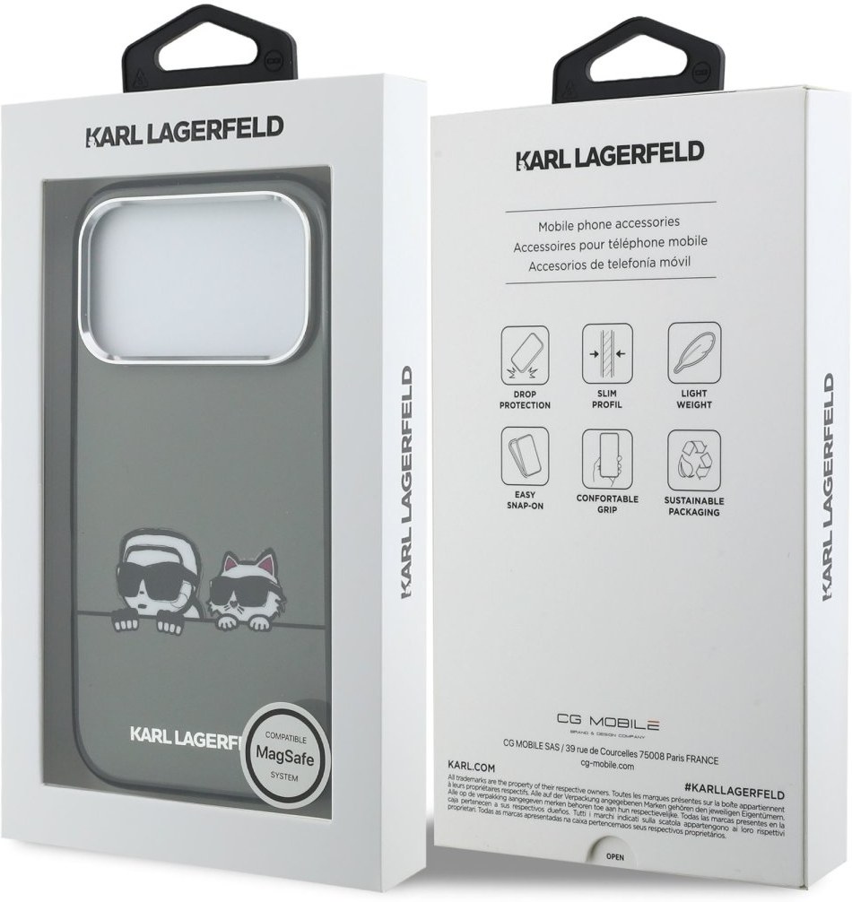 Karl Lagerfeld IML K&CH Heads Logo MagSafe zadný kryt je dokonalý doplnok pre váš telefón aj váš outfit, ktorý kombinuje funkčnosť a štýl v jednom. Tento kryt je vyrobený z kombinácie pevného PC plastu na zadnej strane a TPU mäkkého plastu na bokoch, čo vytvára dokonalú symbiózu odolnosti a pohodlia. Jeho pružný a mäkký materiál sa prispôsobí tvaru vášho telefónu a umožňuje ľahký prístup ku všetkým tlačidlám a konektorom, zatiaľ čo textúra krytu zaistí, že sa skvele drží v ruke a nešmýka sa. Tento kryt podporuje technológiu MagSafe, čo znamená, že je kompatibilný s bezdrôtovým nabíjaním a ďalšími MagSafe doplnkami. Dizajn krytu nesie ikonické vyobrazenie Karla Lagerfelda a jeho mačky Choupette, čo z neho robí nielen praktický, ale aj štýlový doplnok, ktorý skvele doplní váš outfit. Oživte svoj outfit týmto módnym doplnkom, ktorý podčiarkne váš štýl. Stavte na kvalitu, originalitu a dokonalú ochranu pre váš telefón s prémiovým krytom Karl Lagerfeld.Kľúčové vlastnosti