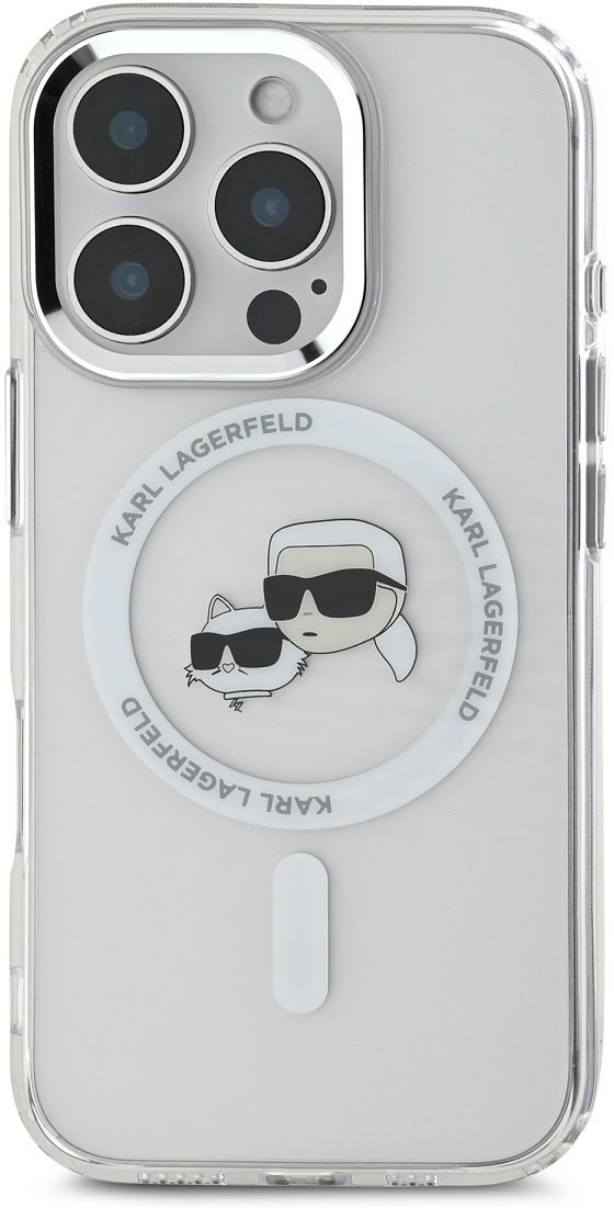 Karl Lagerfeld IML K&CH Heads Metal Frame MagSafe kryt pre iPhone 16 Pro Max, transparentný