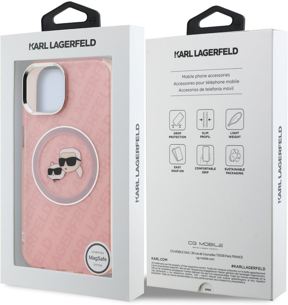 Karl Lagerfeld IML K&CH Heads Repeated Logo MagSafe kryt pre iPhone 15, ružový
