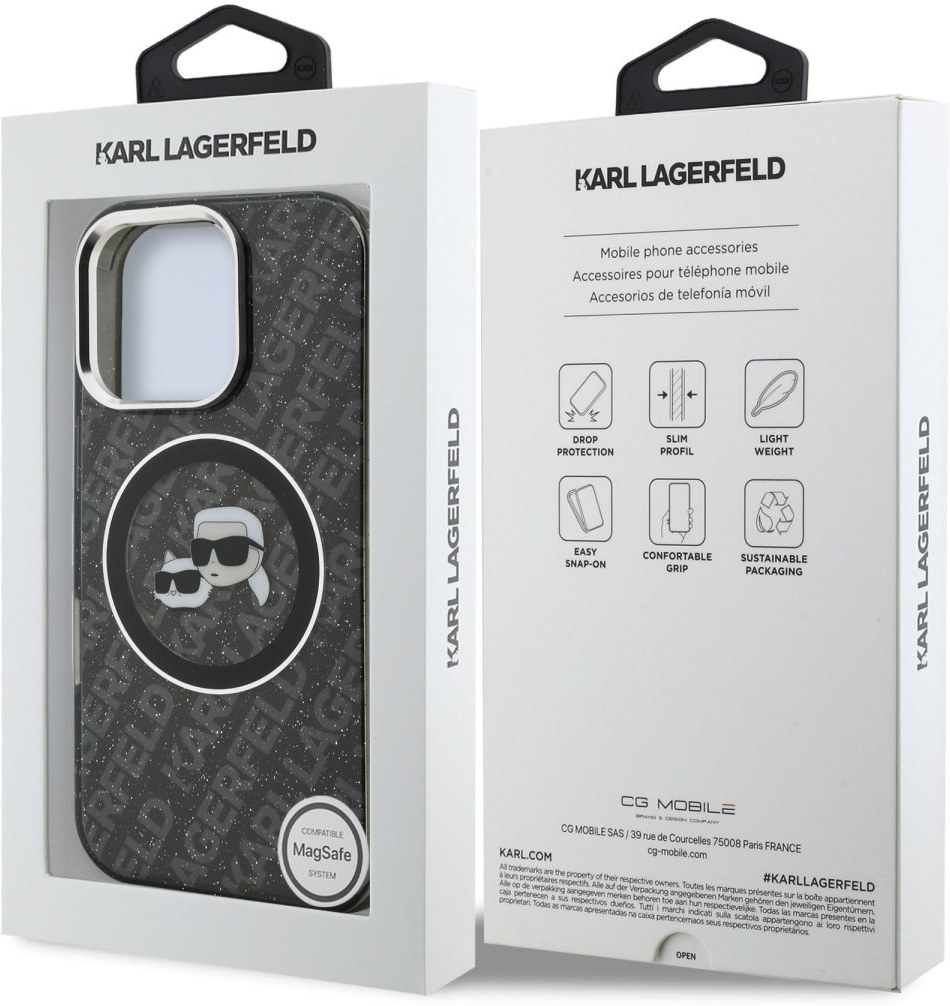 Karl Lagerfeld IML K&CH Heads Repeated Logo MagSafe zadný kryt je dokonalý doplnok pre váš telefón aj outfit, ktorý kombinuje funkčnosť a štýl v jednom. Tento kryt je vyrobený z kombinácie pevného PC plastu na zadnej strane a TPU mäkkého plastu na bokoch, čo vytvára dokonalú symbiózu odolnosti a pohodlia. Jeho pružný a mäkký materiál sa prispôsobí tvaru vášho telefónu a umožňuje ľahký prístup ku všetkým tlačidlám a konektorom, zatiaľ čo textúra krytu zaistí, že sa skvele drží v ruke a nešmýka sa. Tento kryt podporuje technológiu MagSafe, čo znamená, že je kompatibilný s bezdrôtovým nabíjaním a ďalšími MagSafe doplnkami. Elegantné trblietky vo vnútri materiálu a ikonické logo Karl Lagerfeld ponúka nielen štýlový, ale aj luxusný vzhľad. Oživte svoj outfit týmto módnym doplnkom, ktorý podčiarkne váš jedinečný štýl. Stavte na kvalitu, originalitu a dokonalú ochranu pre váš telefón s prémiovým krytom Karl Lagerfeld.Kľúčové vlastnosti